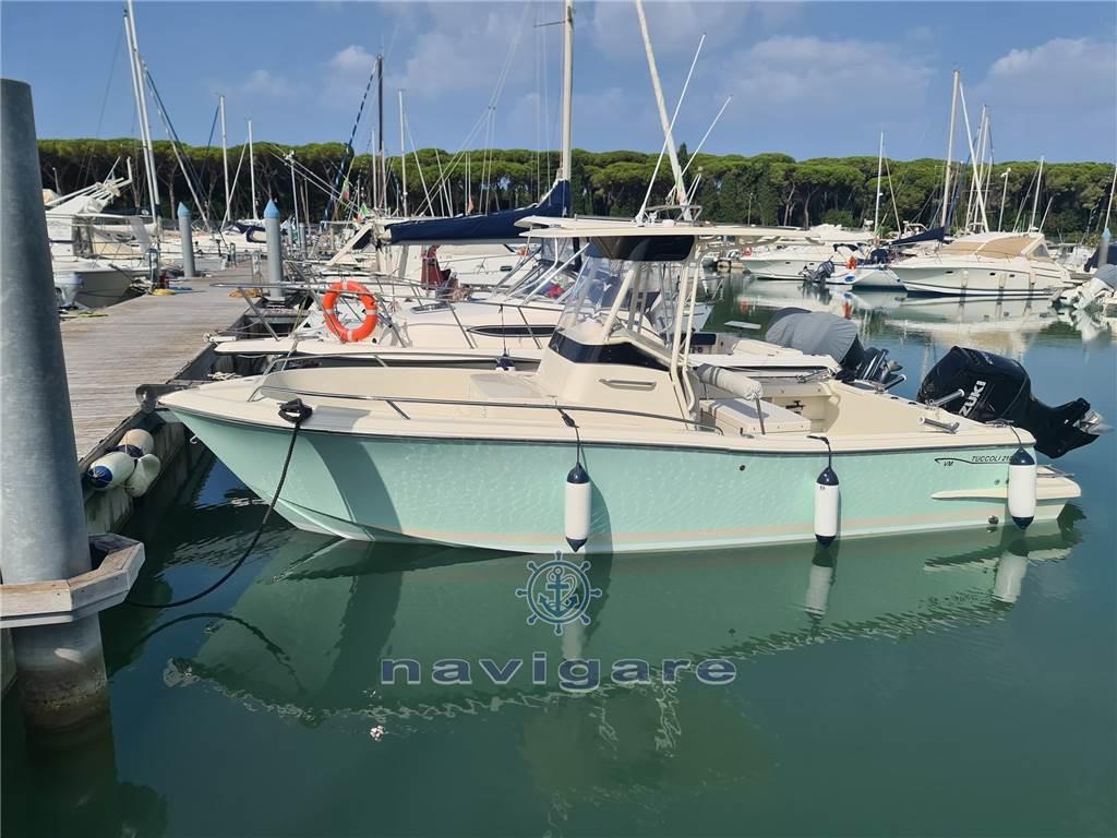 Notas internasNotas de la instrumentaciónAutoclave, Bussola, Doccia esterna, Luci di cortesia, 2 Pompa di sentina automatica, Scaletta da bagno, Tromba, T-TopNotas de armamento4 Portacanne (SU TRINCARINO), Vasca del vivo (50L ca. CON POMPA E RICIRCOLO), Vasca pescato (SOTTO LA SEDUTA VM), Accessoriato per massimizzare la tua attività di pescaCorredata di tutto l’occorrente per la pesca. Vasca del vivo a poppa, la cui chiusura si trasforma in un comodo piano di lavoro; doccetta allungabile per sciacquare il pozzetto e l’attrezzatura. Possibilità di aggiungerne una seconda a mezzanave per arrivare a lavare la consolle e l’intera area di prua. Niente più tempo perso a sciacquare in porto lo sporco che si è seccato e niente più bagagliaio carico di attrezzatura maleodorante. DISPONIBILE ANCHE CON CONFIGURAZIONE DA CROCIERA (AVAIABLE CRUISING LINE) |