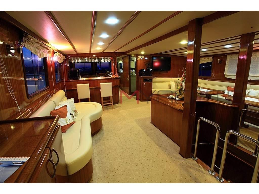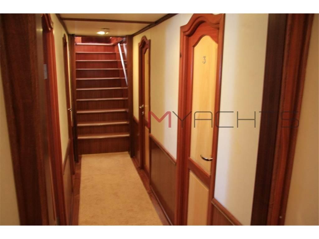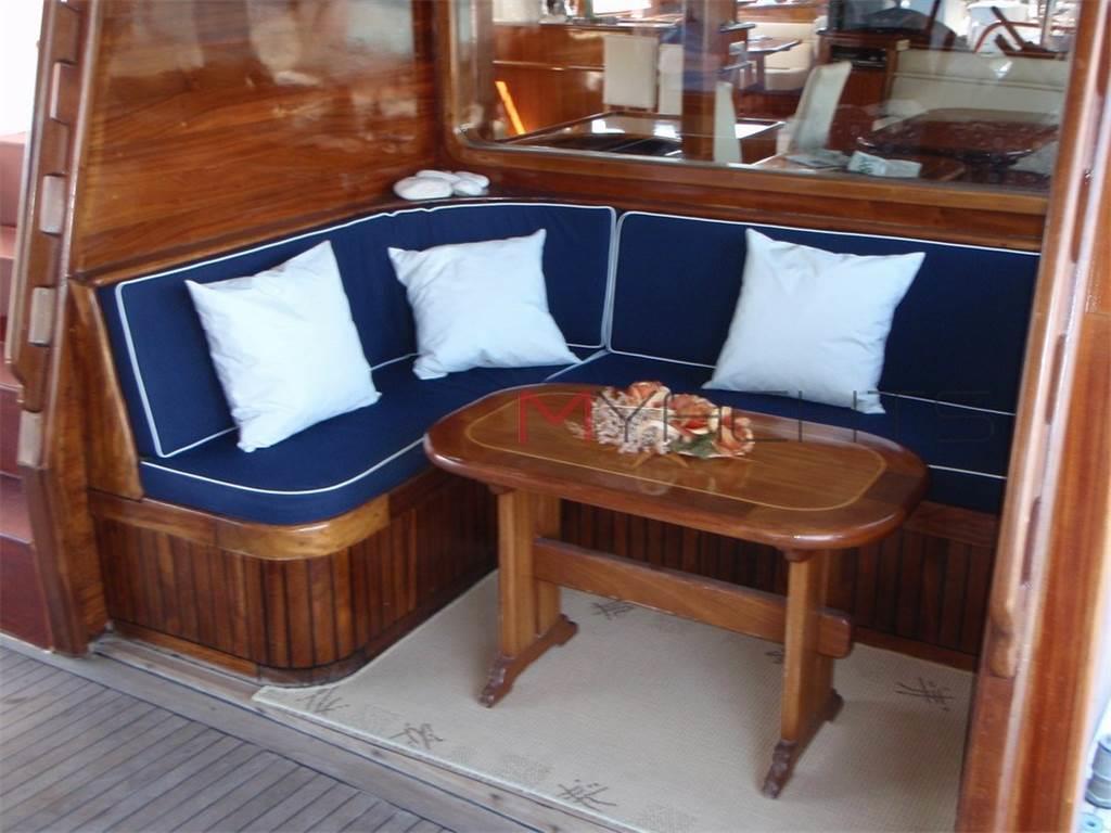 Notas internasNotas de la instrumentaciónBussola, Contamiglia, Ecoscandaglio, GPS, Log, MeteoFax, Pilota automatico, Plotter, Radio VHF, SSB, Stazione vento.Notas de armamentoAllestimento tecnico e di coperta:Ancora, Camminamenti laterali in teak, Doccia esterna, Elica di prua - bow thruster, Gruette, Passerella, Pozzetto Teak, Tender. Dotazioni domestiche di bordo: Aria condizionata, Prese interne 12v, Prese interne 220v, WC marino elettrico. Intrattenimento: DVD, Stereo, TV. Cucina ed elettrodomestici: Congelatore, Cucina, Forno, Frigorifero esterno, Frigorifero interno, Ghiacciaia, Lavastoviglie, Lavatrice, Microonde. Tappezzerie: Cuscineria completa, Cuscineria di poppa, Cuscineria di prua, Cuscineria fly, Telo copriconsolle, Tendalino. |