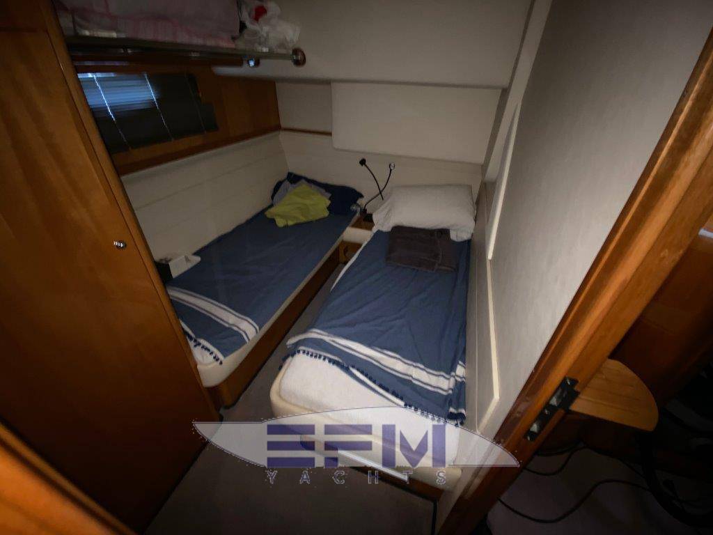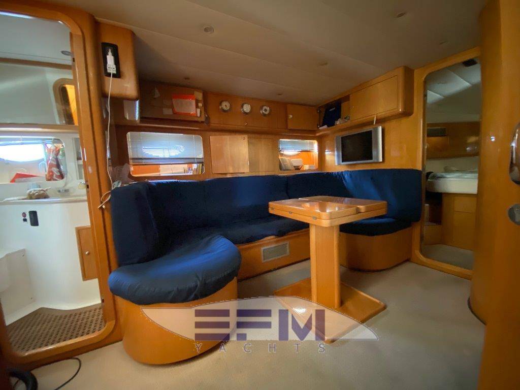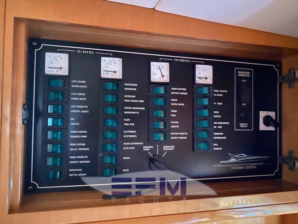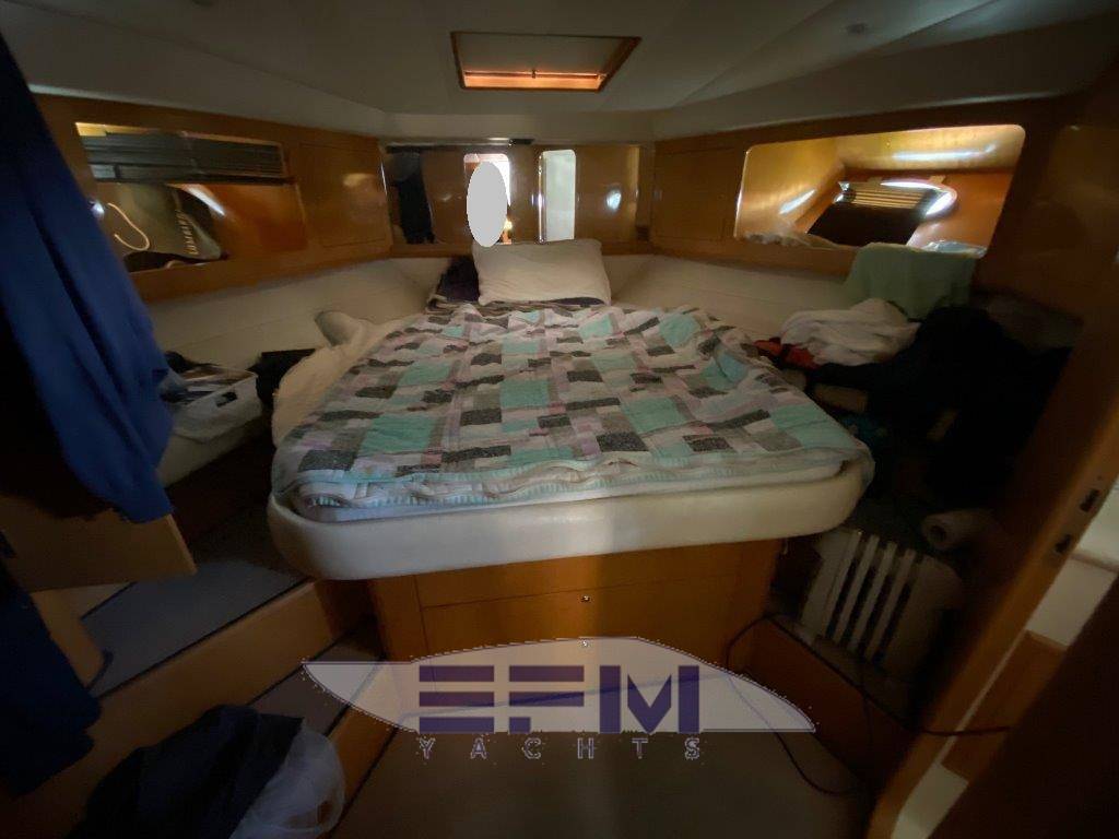 Notas internasCABINA ARMATORE A PRUA CON BAGNO PRIVATO CABINA OSPITI CON 2 LETTI IN PIANO CABINA CON LETTO SINGOLO BAGNO DI SERVIZIO CON ACCESSO DAL SALONE La produzione Uniesse Marine è caratterizzata da una gamma di imbarcazioni adatte al diporto e alla pesca, raffinate ed eleganti all'ormeggio, veri e propri cavalli di razza in navigazione, con una spiccata tendenza nell'affrontare il mare in maniera affidabile, sicura e confortevole. Anche il 48 Open, non solo non sfugge alle regole di cui sopra, ma in più aggiunge un rapporto talmente equilibrato tra affidabilità e divertimento di utilizzo, da renderla veramente un'imbarcazione di estremo interesse. Bella nelle linee e nei raccordi esterni tra poppa e prua, bassa sull'acqua e filante in navigazione, molto ben realizzata a livello di finiture, la sorpresa maggiore il 42 Open la offre proprio in navigazione, dimostrando doti di stabilità, di sicurezza e di comfort davvero entusiasmanti. Gli spazi esterni sono davvero sfruttati a dovere, con componentistiche razionalmente disposte e di facile utilizzo. Bello l'accesso sottocoperta che svela interni con ebanistica pulita, essenziale e marina; una particolare attenzione negli spazi interni di raccordo e nel locale bagno, ben disposto e ampio. Il 48 Open propone la sua candidatura a barca con vocazioni diportistiche di élite, ma con un'attenzione particolare alle normative costruttive e alla robustezza e affidabilità dell'insieme. Notas de la instrumentaciónStrumentazione elettronica completa con: Gps plotter cartografico Navtex Furuno - Schermo Radar Raymarine L1250 a colori - ecoscandaglio - Raymarine VHF RAY 240E con dsc - Raymarine tridata - Raymarine autopilota ST 600 - Antenna Sat INTEL - Antenna RADAR Raymarine -stereo cd con dvd - impianto sky - televisore LCD in dinette - secondo plotter Raytheon RL70 e FURUNO NAVTEX NX 300 in dinette - manette elettroniche - strumentazione motori analogica - Salpancora con Conta catena QUICK in timoneria - comando elica di prua - comando flaps - quadri strumentazione MAN - strumentazione analogica VDO -Notas de armamentoCuscineria e tendalini chiusura poppa completi - elica di prua - passarella idraulica Besenzoni con carbottino in teak - Generatore ONAN - aria condizionata a doppia pompa di calore con revers cycle e riscaldamento con pompe - Salpancora maggiorato con contacatena in timoneria - grande plancetta di poppa allungata ricoperta in teak in buone condizioni - spazioso pozzetto in teak - tender con motore Johnson 15- antenna sat TV - cucina esterna con piastra elettrica ,frigo + ghiacciaia - Strumentazione Raymarine con radar - faro orientabile - scaletta bagno - doccia miscelata a poppa -- ARIA CONDIZIONATA CALDO/FREDDO IN TUTTI GLI AMBIENTI - IMPIANTO TV DECODER SKY - ANTENNA SAT INTELL - GENERATORE ONAN 9KW. - TV LCD - DVD - IMPIANTO STEREO - CASSAFORTE - PIASTRE ELETTRICA IN POZZETTO - PIASTRE ELETTRICA IN DINETTE - ACCESSO FACILITATO AI GAVONI SOTTO IL LETTO DI PRUA CON PISTONI IDRAULICI - 1 FRIGO IN DINETTE - 1 FRIGO IN POZZETTO - 1 FRIGO (GHIACCIAIA) IN POZZETTO - PASSERELLA IDRAULICA - POZZETTO E PLANCETTA DI POPPA IN TEAK (TEAK POPPA RIFATTO 2017) - PANCA ESTERNA POZZETTO IL TEAK PORTA CIME E VARIE - POLTRA PRENDISOLE POZZETTO - DOTAZIONI DI BORDO ESTINTORI ZATTERA - ANCORA DELTA - 75 MT DI CATENA - TENDALINO INVERNALE COMPLETO - DISSALATORE HP 60LT/H - 1 WINCH ELETTRICO TONNEGGIO |