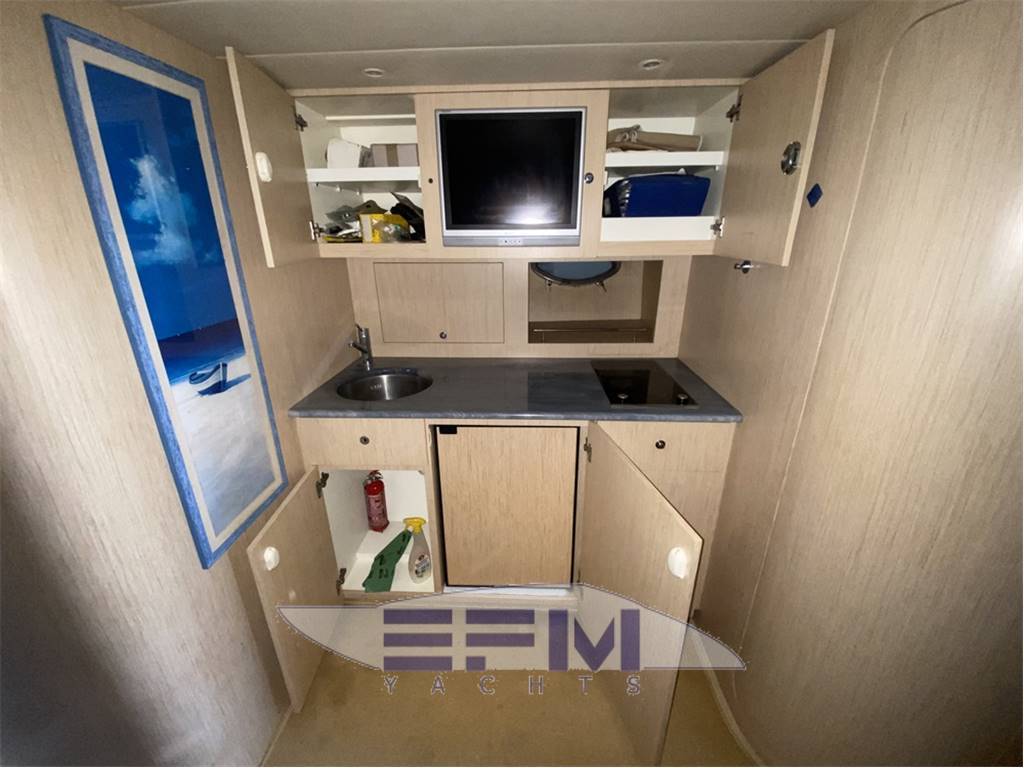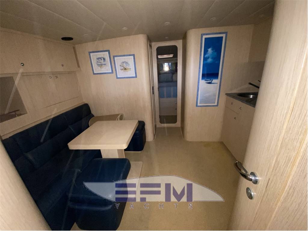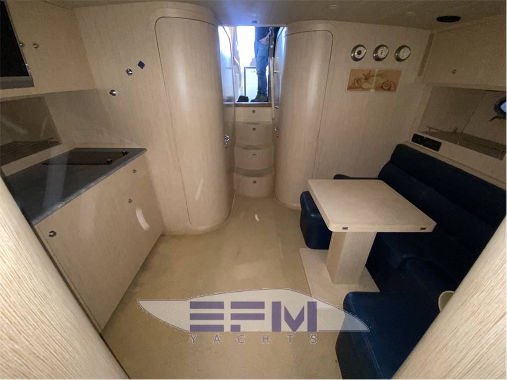 Notas internasCABINA ARMATORE ON LETTO MATRIMONIALE A PRUA E CON BAGNO PRIVATO CABINA OSPITI CON 2 LETTI IN PIANO CABINA VIP CON LETTO MATRIMONIALE FRANCESE BAGNO DI SERVIZIO CON ACCESSO DAL SALONE La produzione Uniesse Marine è caratterizzata da una gamma di imbarcazioni adatte al diporto e alla pesca, raffinate ed eleganti all'ormeggio, veri e propri cavalli di razza in navigazione, con una spiccata tendenza nell'affrontare il mare in maniera affidabile, sicura e confortevole. Anche il 48 Open, non solo non sfugge alle regole di cui sopra, ma in più aggiunge un rapporto talmente equilibrato tra affidabilità e divertimento di utilizzo, da renderla veramente un'imbarcazione di estremo interesse. Bella nelle linee e nei raccordi esterni tra poppa e prua, bassa sull'acqua e filante in navigazione, molto ben realizzata a livello di finiture, la sorpresa maggiore il 48 Open la offre proprio in navigazione, dimostrando doti di stabilità, di sicurezza e di comfort davvero entusiasmanti. Gli spazi esterni sono davvero sfruttati a dovere, con componentistiche razionalmente disposte e di facile utilizzo. Bello l'accesso sottocoperta che svela interni comodi, essenziali e marini; una particolare attenzione negli spazi interni di raccordo e nel locale bagno, ben disposto e ampio. Il 48 Open propone la sua candidatura a barca con vocazioni diportistiche di élite, ma con un'attenzione particolare alle normative costruttive e alla robustezza e affidabilità dell'insieme. CARATTERISTICHE COSTRUTTIVE Carena: V profondo Materiale di costruzione: vetroresina Materiali e caratteristiche di coperta: vetroresina con sandwich di balsa Zona di prua: delfiniera con verricello salpa ancora e gavone ancora, pulpito, passo uomo, cuscineria prendisole, gallocce e passacavi Organizzazione e attrezzature del pozzetto: pontatura in teak, divaneria a U trasformabile, plancia di governo, mobile di servizio fronte divaneria e a poppavia con un lavello ognuno, gavone centrale, gavoni e stipi laterali, doccetta, cappottina, frigorifero, passaggio per piattaforma poppiera Plancetta poppiera: con scaletta bagno a scomparsa Materiali sovrastrutture e vetrate: attrezzature di coperta in acciaio inox, vetrate in cristallo temperato. Notas de la instrumentaciónStrumentazione elettronica completa con: Gps plotter cartografico Raymerine - ecoscandaglio - Raymarine VHF RAY 240E con dsc - Raymarine tridata - Raymarine autopilota ST 600 - Antenna tv - Antenna vhf -stereo cd con dvd - impianto tv - manette elettroniche - strumentazione motori analogica - Salpancora in timoneria - comando elica di prua - comando flaps - quadri strumentazione MAN - strumentazione analogica VDO - TV salone -Notas de armamentoCuscineria e tendalini chiusura dinette color caki + 2 poltrone prendisole a poppa- elica di prua - passarella idraulica Besenzoni con carbottino in teak - Generatore KOHLER - aria condizionata CLIMMA in salone - Salpancora in timoneria - plancetta di poppa allungata ricoperta in teak - spazioso pozzetto in teak - cucina esterna con grill , piasta cottura 2 fuochi, 3 frigo e lavabo - Cucina interna con microonde, frigo, piastra elettrica 2 fuochi e lavabo - scaletta bagno - doccia miscelata a poppa - panca uniesse nel pozzetto - dinette pozzetto con tavolo in radica - Rollbar vtr con bimini color caki - tendalino fenestrato chiusura pozzetto -- ARIA CONDIZIONATA CLIMMA - GENERATORE - STRUMENTAZIONE RAYMARINE - IMPIANTO STEREO - 3 CABINE DUE BAGNI - PIASTRA VETROCERAMICA IN POZZETTO - PIASTRA VETROCERAMICA 2 FUOCHI IN DINETTE - ACCESSO FACILITATO AI GAVONI SOTTO IL LETTO DI PRUA CON PISTONI IDRAULICI - 1 FRIGO IN DINETTE - 1 FRIGO IN POZZETTO - 1 GRILL IN POZZETTO - PASSERELLA IDRAULICA - POZZETTO E PLANCETTA DI POPPA IN TEAK - PANCA ESTERNA POZZETTO CON PORTA CIME E VARIE - 2 POLTRONE PRENDISOLE POZZETTO - DOTAZIONI DI BORDO - ANCORA DELTA CON CATENA ZINCATA - TENDALINO BIMINI + CHIUSURA POZZETTO RIALZATO - 1 WINCH ELETTRICO TONNEGGIO - POZZETTO RIVESTITO IN TEAK CON : DIVANO, TAVOLO, TIMONERIA, MOBILE CUCINA , MOBILI POZZETTO , 3 FRIGO. |