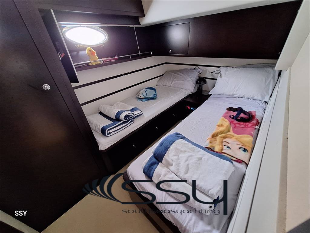 Notas internas- Pozzeto climatizzato con divano & tavolo telescopico, smart TV Samsung 32’ a scomparsa + Fusion MS-RA70N, 2 frigoabar & lavello; - Cucina interna completa di piano cottura in vetroceramica Foster, forno combi digitale Bosch, frigorifero & lavello; - Cabina armatoriale matrimoniale prodiera con bagno privato, box doccia + cd/mp3 player; - Cabina ospiti doppia verso dritta con letti in piano, bagno con doccia, smart TV Samsung 32’ + cd/mp3 player; - Cabina marinaio a prua con ingresso e servizi indipendenti. 2 CABIN VERSION + CREW CABIN - Air-conditioned cockpit with very large sofa & telescopic table + foldaway 32’ Samsung smart TV + Fusion MS-RA70N, 2 frigobars & sink; -Inside large kitchen corner with Foster ceramic hob, Bosch digiatl combi oven, refrigerator & sink; -Forward master double cabin with bathroom with box shower + cd/mp3 player; -Starboard guest wtin cabin with bathoroom with shower + cd/mp3 player & 32’ Samsung smart TV; -Forward separate crew cabin with its own entrance & facility. Notas de la instrumentaciónVHF RAY240E;Tridata Autohelm ST60+; multifunction plotter/radar Raymarine E120; autopilot Authoelm ST6002 + S100 remote control; echosounder with through hull 1Kw transducer (scandaglio con trasduttore 1kw passante); Quick digital chain counter / contacatena digitale; 2xVessel View Smart Craft; Lenco flaps with indicator; Notas de armamento- Elica di prua & poppa SidePower;- gruppo elettrogeno Kohler 11EFOZD 50Hz; - caricabatterie Mastervolt battery + raddrizzatore; - impianto A/C reversibile Climma MKII (anche in pozzetto); - impianto TV SAT system Raymarine; - 2x Samsung 32’ smart TV; - Fusion MS-RA70N bluetooth HIFI; - dissalatore Baitek; - winch di tonneggio a poppa Lofrans 1200w; - passerella idraulica Besenzoni telescopica; - mobile bar pozzetto con 2 frigoabr & lavello; - tendalino chiusura pozzetto + laterali; - prendisole di prua completo di bimini top a scomparsa; - luci sommerse a poppa; - tender 2.40 Eurovinil + Honda 2.3hp; - dotazioni di sicurezza complete. - SidePower bow & stern thruster; - Kohler 11EFOZD 50Hz generator; - Mastervolt battery charter + rectfier; - A/C system reverse cycle Climma Vega MKII (cockpit included); - TV SAT system Raymarine; - 2x Samsung 32’ smart TV; - Fusion MS-RA70N bluetooth HIFI; - Baitek watermaker; - aft Lofrans winch 1200w; - Besenzoni hydraulic telescopic gangway; - cockpit bar with 2 frigoabars & sink; - cockpit closing & canvas + side coverings; - bow sunbed with foldaway bimini top; - underwater led lights; - tender 2.40 Eurovinil + Honda 2.3hp; - full emergency equipment. |