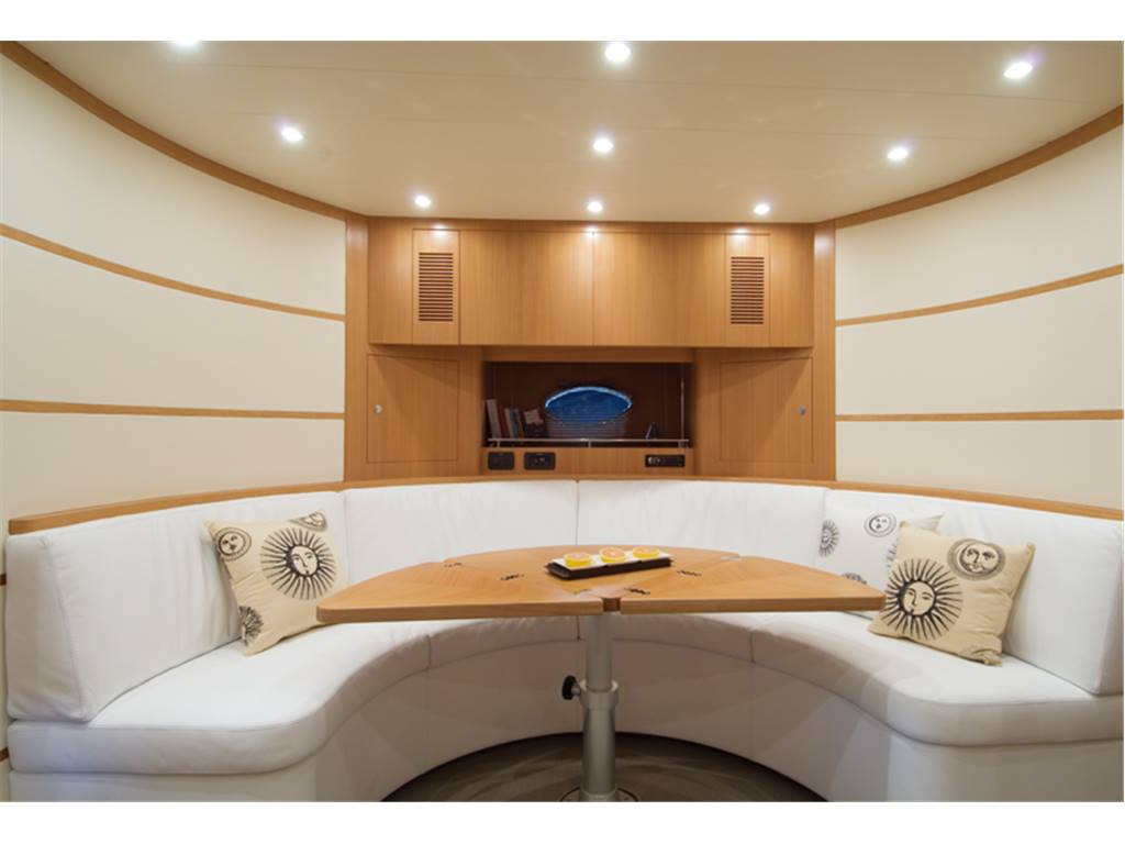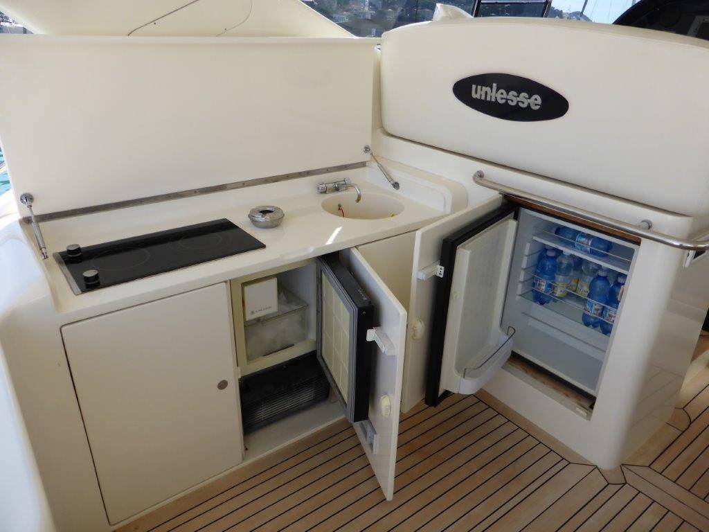 Notas internasBella nelle linee e nei raccordi esterni tra poppa e prua, bassa sull'acqua e filante in navigazione, molto ben realizzata a livello di finiture, la sorpresa maggiore la offre proprio in navigazione, dimostrando doti di stabilità, di sicurezza e di comfort davvero entusiasmanti. Gli spazi esterni sono davvero sfruttati a dovere, con componentistiche razionalmente disposte e di facile utilizzo. Bello l'accesso sottocoperta che svela interni con ebanistica pulita, essenziale e marina; una particolare attenzione negli spazi interni di raccordo e nei locali bagno, ben disposti e ampi. Il 57 Open propone la sua candidatura a barca con vocazioni diportistiche di élite, ma con un'attenzione particolare alle normative costruttive e alla robustezza e affidabilità dell'insieme. Suddivisione e caratteristiche: cabina a prua con matrimoniale, armadio, bagno privato con box doccia , bagno di servizio a poppa via dotato di doppio accesso, cabina ospiti a poppavia con due letti affiancati e armadio e bagno con doccia, salone con dinette trasformabile e zona cottura a dritta , terza cabina a poppa via con due letti affiancati e armadio e bagno privato - Ebanistica in noce tanganica con finiture satinate, tappezzerie e rivestimenti in tessuti a scelta Posto di pilotaggio in pozzetto: con seduta pilota e copilota a divaneria, timoneria a ruota idraulica, telecomandi, strumentazioni e indicatori completi motori, bussola, VHF, tridata log, GPS plotter Zona carteggio: a sinistra plancia o sottocoperta Zona cucina: con piano di appoggio in granito, cottura a 2 fuochi a piastra, frigorifero, microonde, cappa aspirante, mobili e stipetti, pensili. VALUTAZIONI COMFORT E FUNZIONALITÀ Coperta: ben realizzata, essenziale e affidabile Interni: ben realizzati e con molto spazio in dinette e salone; molto ampie e abitabili le cabine Comfort passeggeri: eccellente, soprattutto in navigazione Posizione e comfort zona di pilotaggio: molto valida Zona carteggio: buona Zona cucina: ben posizionata e con eccellenti componentistiche, molti e ben posizionati i mobili e gli stipi Servizio: di grandi dimensioni e ben realizzato, con doppio accesso Agibilità e operatività interna vano motore: buone Quadro e impiantistiche elettriche: ben realizzato e posizionato razionalmente. CONDIZIONI IMBARCAZIONE Interni molto in ordine in PERO SATINATO , rivestimenti chiari e pavimento in mogano con fuga d'acero in buone condizioni .. divani in stoffa grigio - Ampia e luminosa cabina armatoriale a prua con letto matrimoniale ad isola con cassetti e armadio e con comodi gavoni per stivaggio vestiario e scarpe e con accesso al grande ampio bagno privato con lavabo wc e box doccia - sulla dritta di poppa ampia cabina ospiti con 2 letti in piano - Accesso esterno e dalla doppia al grande ampio bagno con lavabo wc e doccia - sulla sx sempre a poppa terza cabina con con 2 letti in piano e grande ampio bagno privato con lavabo wc e doccia - Luminosa dinette con divano a C e con tavolo quadrato sdoppiabile in legno ed abbattibile per trasformazione letto matrimoniale - A murata di dritta c'e' il mobile della cucina completa con lavello inox, frigorifero 80 Lt, piastra 2 fuochi in vetroceramica e ripiano in corian color marmo , tutto in perfetto stato di mantenimento - Notas de la instrumentaciónStrumentazione Raymarine completa: Gps plotter cartografico Raymarine a colori c 120 - Radar Raymarine C 120 ecoscandaglio - vhf SIMRAD AH581 - tridata st 60 Raymarine - autopilota st 6001 Raymarine - Antenna Sat -faro elettrico - stereo cd con dvd - impianto con decoder SKY - 4 televisori LCD Samsung in dinette e Armatore -elica di prua - manette elettroniche ZF - doppio Computer MAN gestione motori - flaps idraulici - salpancora con telecomando a prua e rinvio in timoneria -Notas de armamentoSCAFO BLUEELICA DI PRUA HARD TOP IDRAULICO ARIA CONDIZIONATA CONDIARIA REVERSE CYCLE CON TERMOSTATO IN TUTTI GLI AMBIENTI IMPIANTO TV CON ANTENNA SAT GENERATORE ONAN 3 TVC LCD SAMSUNG DVD IMPIANTO STEREO CD 2 FRIGO PIASTRA ELETTRICA PASSERELLA IDRAULICA OPACMARE PILOTA AUTOMATICO PLOTTER A COLORI RADAR TRIDATA VHF FARO MOTORIZZATO MANETTE ELETTRONICHE MAN ZF FLAPS COMPUTER MAN LAVASCIUGA ZOPPAS 2 WINCHES A POPPA DI TONNEGGIO POZZETTO E PLANCETTA DI POPPA IN TEAK PRENDISOLE PRUA E POPPA DOTAZIONI DI SICUREZZA + ZATTERA TAVOLO POZZETTO ELETTRICO ANCORA BRUCE 30KG + 100 MT CATENA + CONTACATENA DIGITALE FARI SUBACQUEI |