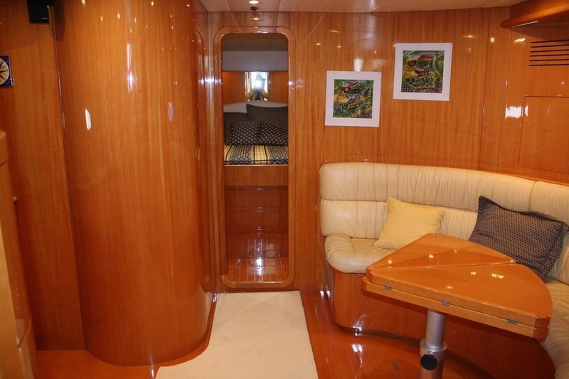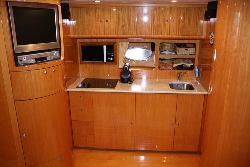 Notas internasuna cabina doble - una cabina con cama de matrimonio francés - una cabina doble con cama plana - tres cuartos de baño - comedor con un sofá semicircular y mesa, de cocina en contraste con una estufa de tres quemadores eléctricos, nevera, congelador y microondas. tripulación de cabina con servicio. interior de madera de nogal Tanganica, sofá de cuero, pisos de madera de nogal.