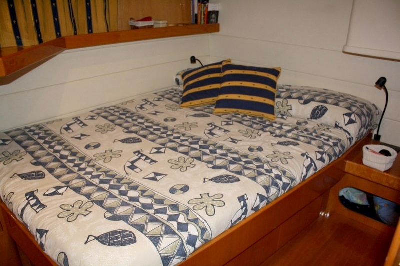 Notas de armamentoGenerador Onan - aire acondicionado, doble ciclo en todos los ambientes - Pasarela hidráulica (nuevo 2006) - de licitación Lomac 2,70 con motor de 15 HP Yamaha. - Hélice de proa - Controles electrónicos - móvil en la cabina con horno eléctrico, nevera, máquina de hielo y se hunden - cabina y cubierta de popa en teca - verano y toldos de invierno (2008 nuevo) - TV LCD y DVD en la sala de estar - LCD TV cabina de armador - Hi-Fi Bose.