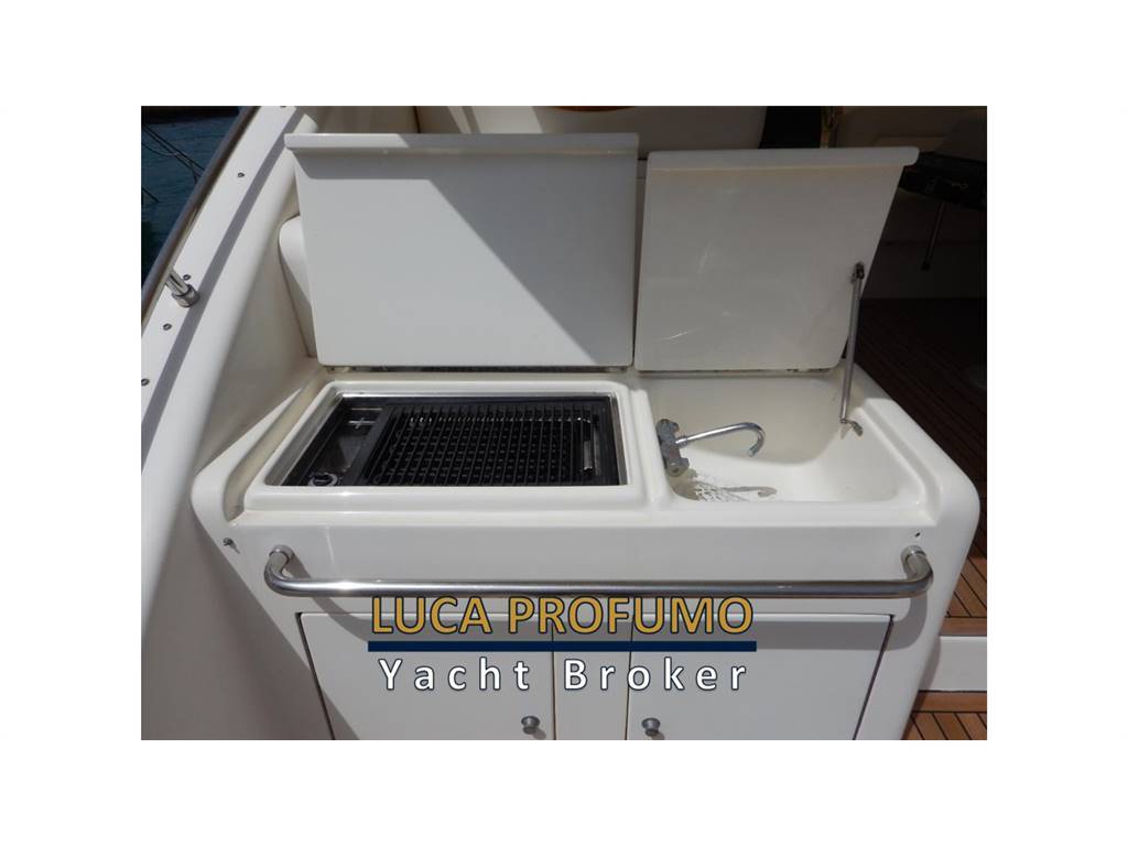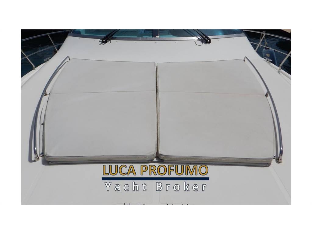 Notas internasCabina ospiti con letti in piano a destra Cabina Ospiti con letto singolo a sinistra Bagno ospiti con doccia Cucina e dinette nel quadrato Notas de la instrumentaciónComandi motori elettronicimonitor Man Plotter Raymarine Scandaglio Tridata Raymarine Pilota automatico VHF Bussola Display motori N. 2 elettronici Trim Comando Elica di prua Notas de armamentoElica di prua, Antenna TV, passerella idraulica, climatizzatore, pozzetto in teak, plancetta in teak.Mobile attrezzato sul ponte con frigo, piastra elettrica e fuochi. Dinette con tavolo sul ponte. Mobili nel pozzetto con lavello e gavoni. |