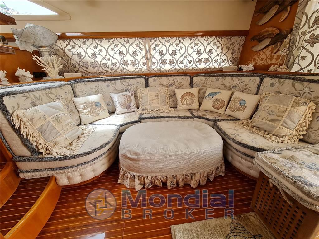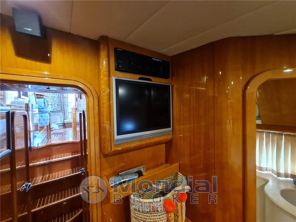 Notas de armamentoAltoparlanti, Antenna Satellitare TV (Kvh), Aria condizionata (doppio ciclo), BBQ/ Grill, Bimini, Boiler (bivalente), Clima reversibile, Cuscineria di prua, Cuscineria fly, Decoder satellite (Sky), Digitale Terrestre, DVD, Home Theater (Bose), Impianto acque nere, Impianto TV, Lavasciuga, Prese interne 12v, Prese interne 220v, Radio AM/FM, Stereo, Telo copriconsolle, Telo coprisedile, 2 TV, 4 WC marino elettrico
