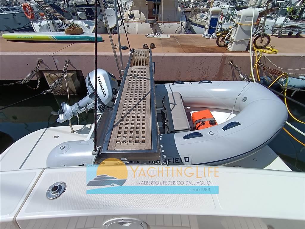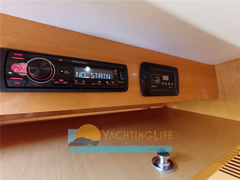 Notas internasNotas de la instrumentaciónAllarme motore, Ancora (Bruce 20kg), Autoclave, Autogonfiabile, Batterie, Bussola, Caricabatterie (2024), Comando motori elettronico, Computer di bordo, Contamiglia, Doccia esterna, DSC vhf, Elica di prua - bow thruster, Flap idraulici, GPS, Impianto antincendio, Lavandino nel Pozzetto, Log (Tridata Raymarine), Luci di cortesia, Motore ausiliario, Passerella (Idraulica), Piattaforma, Pilota automatico (Raymarine), Pompa di sentina automatica, Pompa di sentina manuale, Porta ingresso, Pozzetto Teak, Presa 220V banchina, Radio VHF (Raymarine), Rollbar, Salpa Ancore Elettrico, Scaletta da bagno, Tavolo pozzetto, Tender (e motore), TrombaNotas de armamentoAltoparlanti, Antenna Satellitare TV, Aria condizionata, Boiler, Copripozzetto, Cucina (interna ed esterna), Cuscineria completa, Frigorifero esterno, Frigorifero interno, Impianto acque nere, Impianto TV, Microonde (combinato), Piastra in vetroceramica (interna ed esterna), Prese interne 12v, Prese interne 220v, Ricevitore satellitare, Riscaldamento, Stereo, Teli copri finestra, Telo copriconsolle, Tendalino, TV, WC marino elettrico, Zattera di salvataggio |