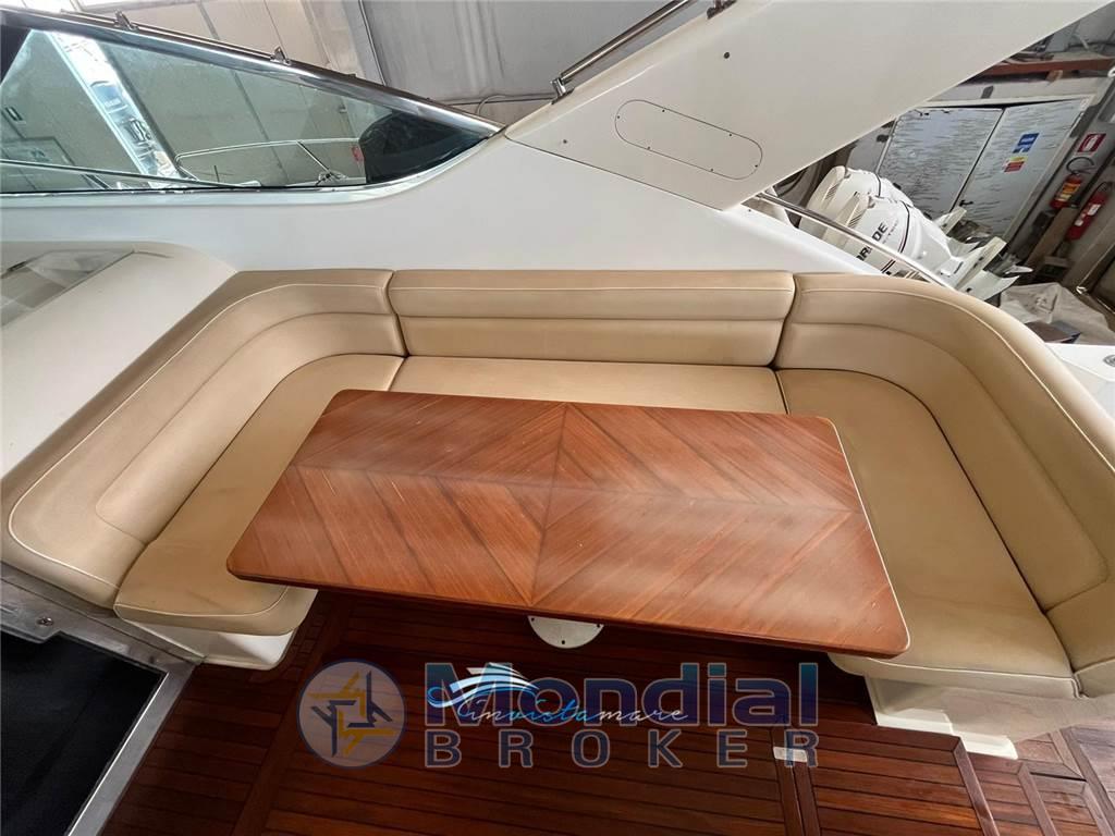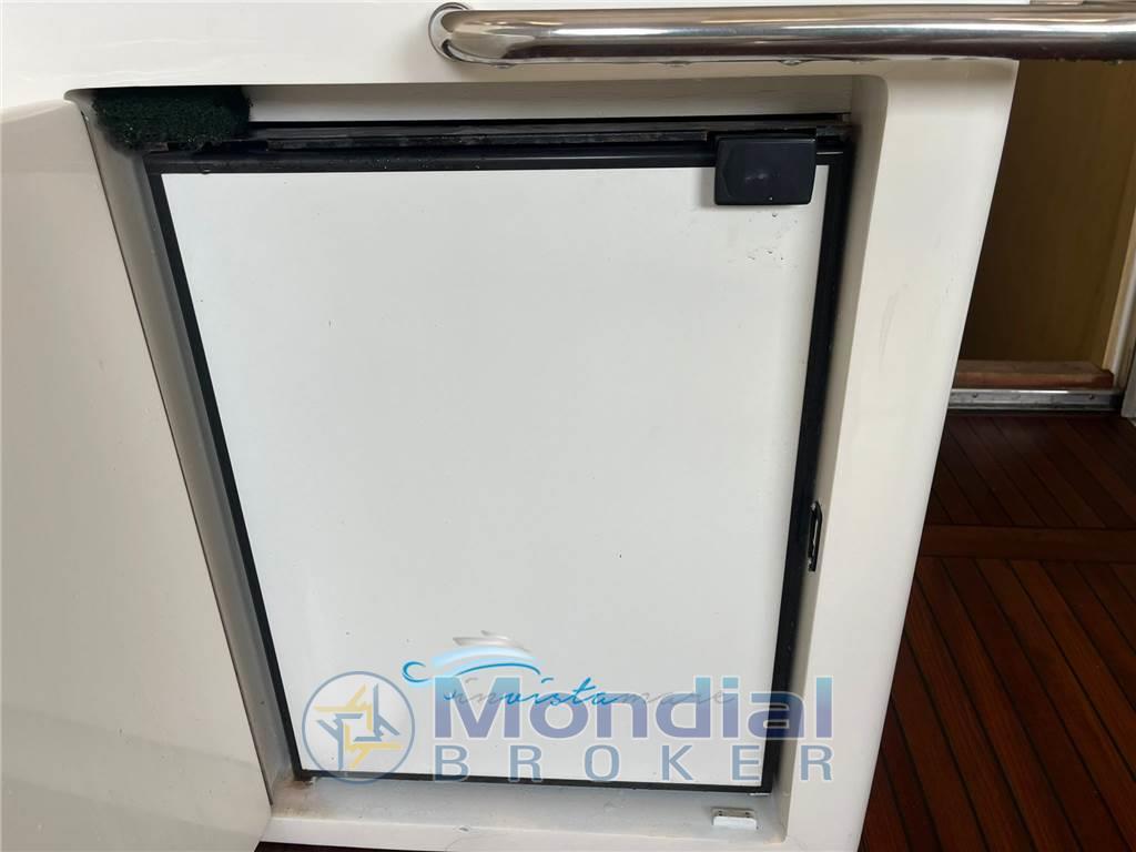 Notas internasNotas de la instrumentaciónBussola, Contamiglia, Ecoscandaglio, GPS, Pilota automatico, Radar, Radio VHF.Notas de armamentoAllestimento tecnico e di coperta:Doccia esterna, Elica di prua - bow thruster, 2 Flap idraulici, Passerella (idraulica Besenzoni maggiorata), Piattaforma, Pompa di sentina automatica, Pompa di sentina manuale, Raddrizzatore, Rollbar, Salpa Ancore Elettrico (nuovo 1600 w), Scaletta da bagno, Tavolo pozzetto, Winch tonneggio di poppa. Dotazioni domestiche di bordo: Aria condizionata (Climma), BBQ/ Grill. Dotazioni di sicurezza: Giubbetti di salvataggio. Intrattenimento: Stereo. Cucina ed elettrodomestici: Cucina, 2 Frigorifero esterno, Frigorifero interno (in dinette), ICE Maker (nel pozzetto), Microonde, Piastra in vetroceramica (2 fuochi nel salone). Tappezzerie: Tendalino. |