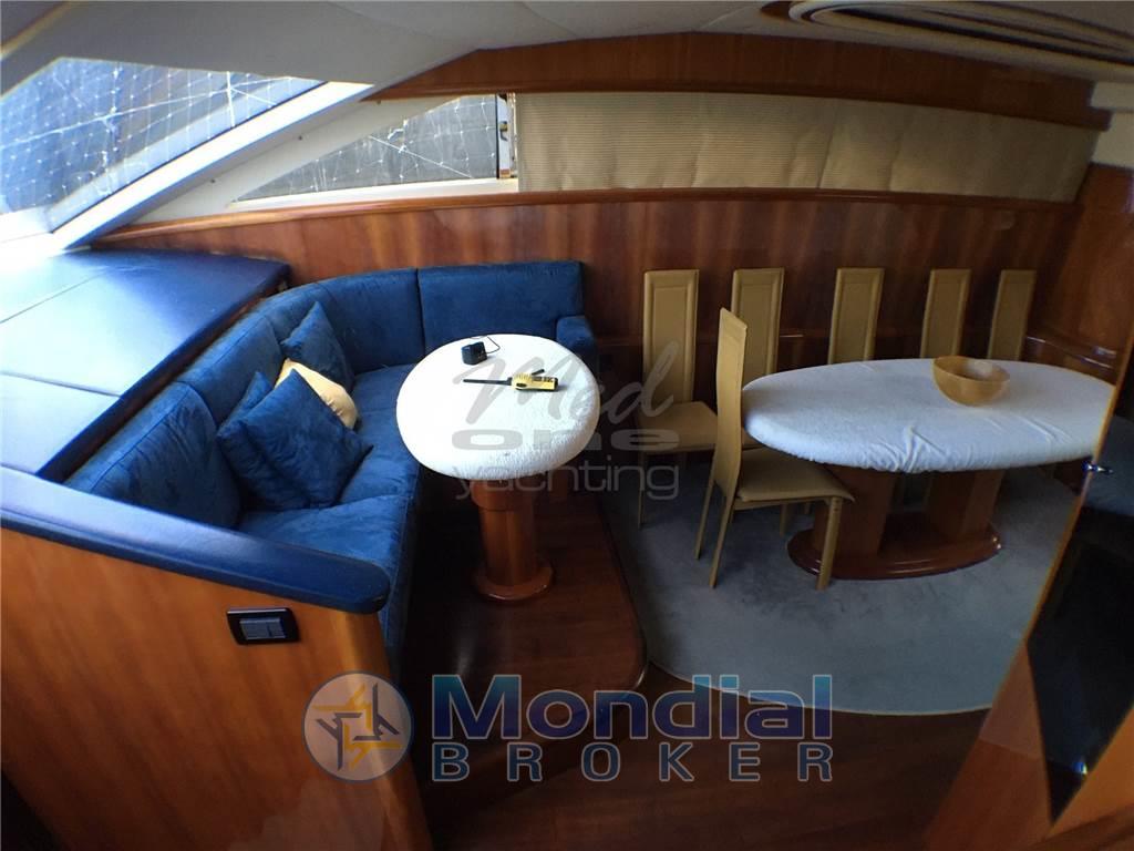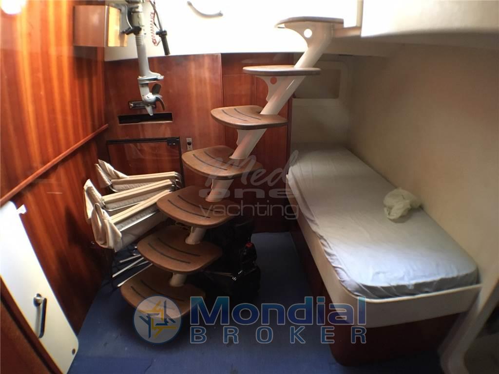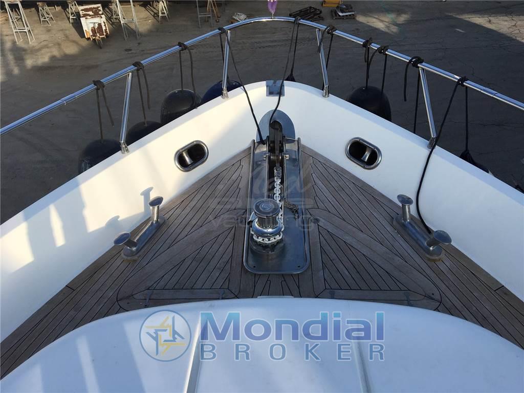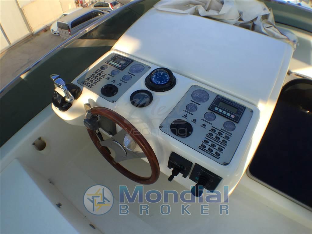 Notas internasNotas de la instrumentaciónAngolo barra, Bussola, Comando motori elettronico, Contametri catena, Contamiglia, Ecoscandaglio, GPS, Interfono, Pilota automatico, Plotter, Radar, Radio VHF, Telefono GSM.Notas de armamentoAllestimento tecnico e di coperta:Allarme sentina, Autogonfiabile, Doccia esterna, Doppia timoneria, Elica di poppa - stern thruster, Elica di prua - bow thruster, Flap idraulici (N°2), Passerella (IDRAULICA), Piattaforma, Pompa di sentina automatica, Pompa di sentina manuale, Raddrizzatore, Salpa Ancore Elettrico, Scaletta da bagno, Tender. Dotazioni domestiche di bordo: Aria condizionata. Dotazioni di sicurezza: Giubbetti di salvataggio. Intrattenimento: Impianto TV, Radio AM/FM, Stereo, TV. Cucina ed elettrodomestici: Congelatore, Cucina, Fornello, Forno, Frigorifero interno, Ghiacciaia, Lavatrice, Microonde. Tappezzerie: Cappottina, Cuscineria di prua. |
