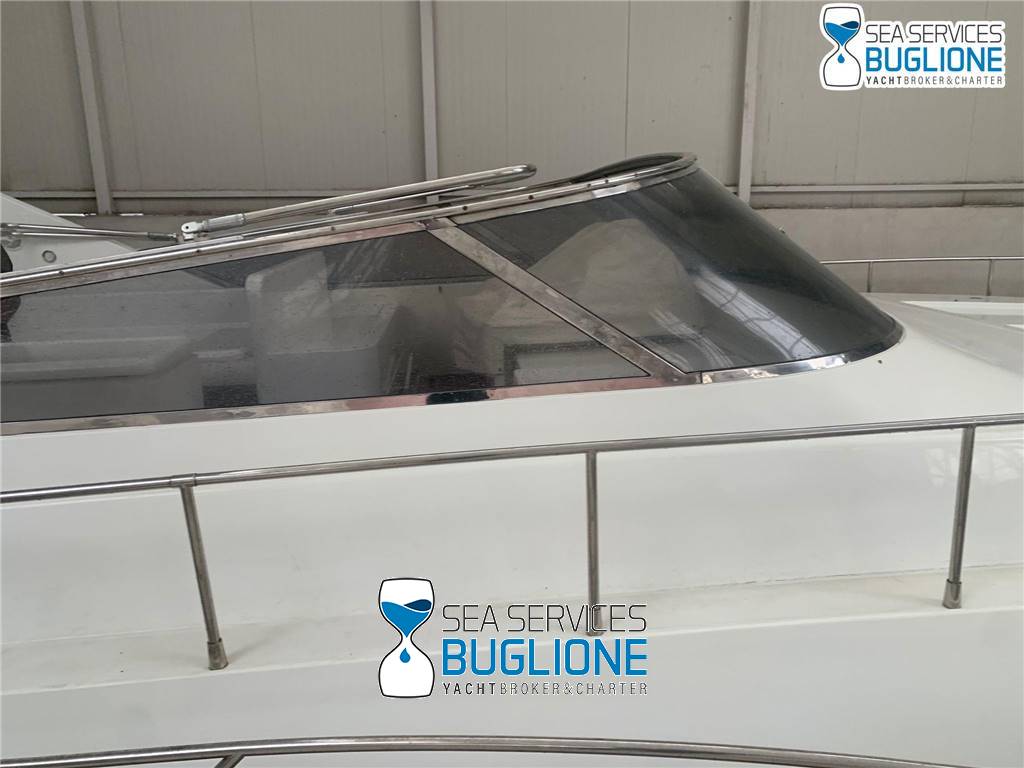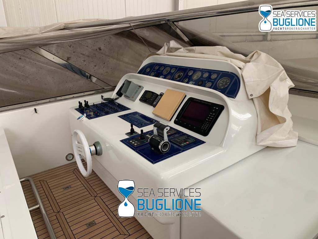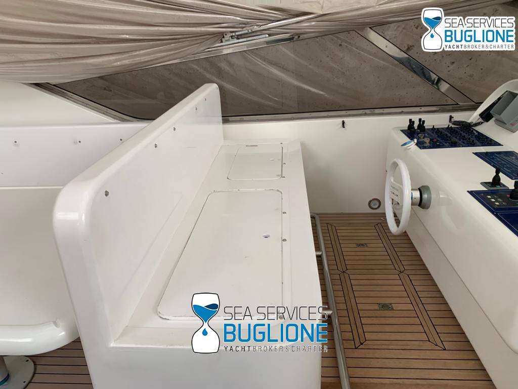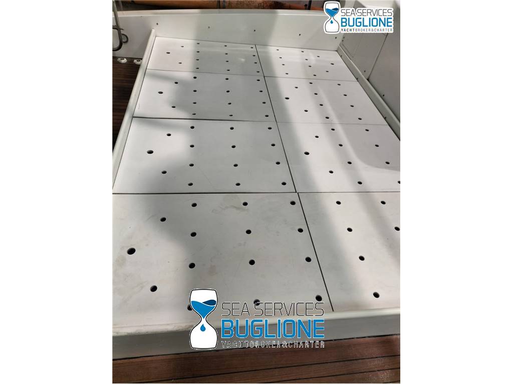 Notas internasInterne finemente allestiti, mobili in ciliegio, calpestio in moquette. Ampia dinette, dotata di grande altezza e n°4 oblò, tavolo da caffè e divano, tv lcd, cucina, frigorifero a colonna, freezer, fuochi . Cabina armatoriale a prua, letto matrimoniale, n°4 oblò, n°1 boccaporto, ambiente climatizzato. Bagno privato armatoriale dotato di wc e bidet tecma, lavabo e doccia con calpestio in carabottino. Cabina vip a dritta nave dotata di letto una piazza e mezzo, oblò, ambiente climatizzato. Bagno privato con lavabo, wc e box doccia Cabina ospiti a sinistra nave dotata di due letti in piano ed un letto pullman, ampio specchio in camera, oblò , ambiente climatizzato. Bagno privato lavabo wc e box doccia chiuso Notas de la instrumentaciónGps NAV-STATION 11 SUN COLOR VCAMKoden cvs 106 Autopilota Navicontrol Gps Simrad Telecomando verricello mz elettronic Notas de armamentoGeneratore KholerAria Condizionata Condaria Dissalatore Tecnomar Caiolor 600 c Passerella Idraulica Elica di Prua Elica di Poppa Verricello Elettrico di prua Verricello di Poppa Inverter Caricabatterie Cucina Esterna Frigorifero a colonna interno Frigorifero esterno |