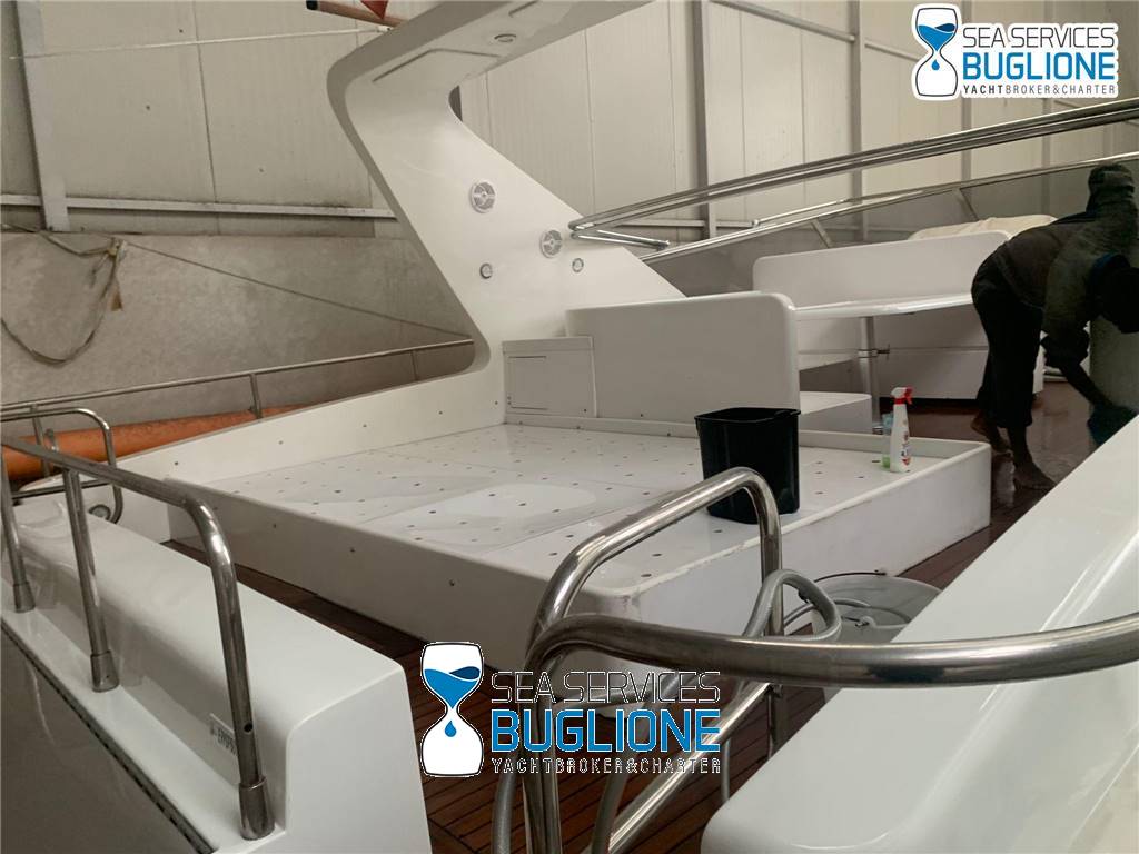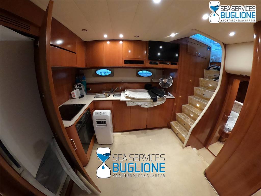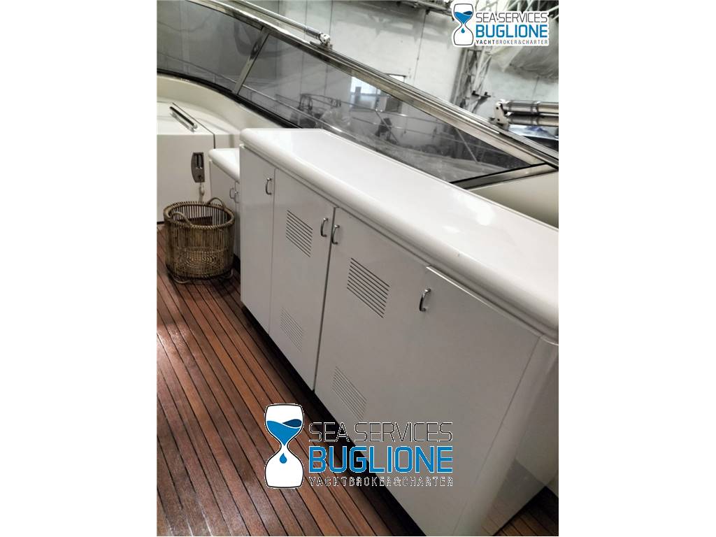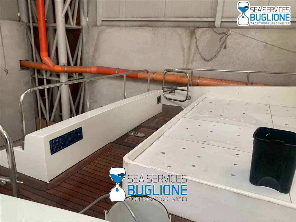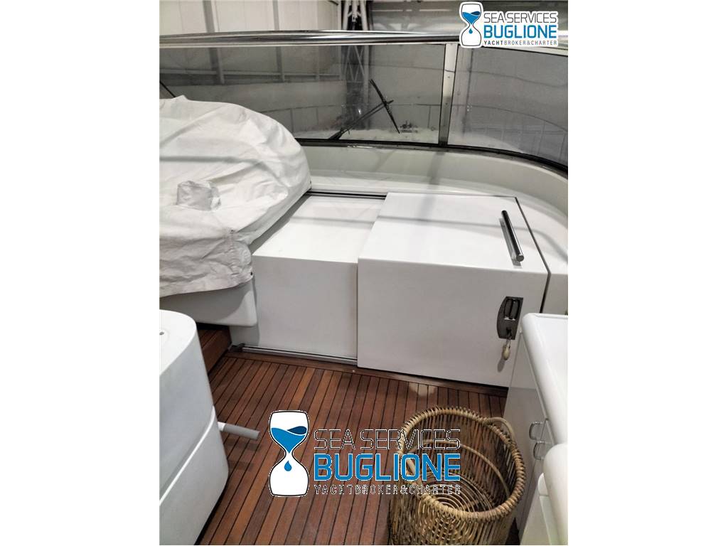 Notas internasInterne finemente allestiti, mobili in ciliegio, calpestio in moquette. Ampia dinette, dotata di grande altezza e n°4 oblò, tavolo da caffè e divano, tv lcd, cucina, frigorifero a colonna, freezer, fuochi . Cabina armatoriale a prua, letto matrimoniale, n°4 oblò, n°1 boccaporto, ambiente climatizzato. Bagno privato armatoriale dotato di wc e bidet tecma, lavabo e doccia con calpestio in carabottino. Cabina vip a dritta nave dotata di letto una piazza e mezzo, oblò, ambiente climatizzato. Bagno privato con lavabo, wc e box doccia Cabina ospiti a sinistra nave dotata di due letti in piano ed un letto pullman, ampio specchio in camera, oblò , ambiente climatizzato. Bagno privato lavabo wc e box doccia chiuso Notas de la instrumentaciónGps NAV-STATION 11 SUN COLOR VCAMKoden cvs 106 Autopilota Navicontrol Gps Simrad Telecomando verricello mz elettronic Notas de armamentoGeneratore KholerAria Condizionata Condaria Dissalatore Tecnomar Caiolor 600 c Passerella Idraulica Elica di Prua Elica di Poppa Verricello Elettrico di prua Verricello di Poppa Inverter Caricabatterie Cucina Esterna Frigorifero a colonna interno Frigorifero esterno |