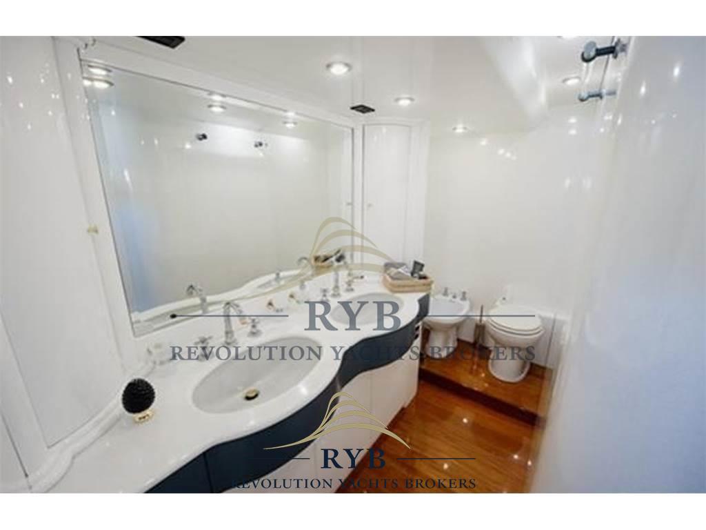 Notas internasNotas de la instrumentaciónAngolo barra, 2 Bussola, Comando motori elettronico, Contamiglia, Ecoscandaglio, GPS, Joystick, Pilota automatico, Plotter, Radio VHF.Notas de armamentoAllestimento tecnico e di coperta:Allarme motore, Allarme sentina, 2 Ancora, Camminamenti laterali in teak, Doccia esterna, Doppia timoneria, Elica di poppa - stern thruster, Elica di prua - bow thruster, Flap idraulici, Gruette per tender su fly, Impianto antincendio, Indicatori Flaps, Lavaggio catena, Luci di cortesia, Passerella (idraulica), Piattaforma, Pompa di sentina automatica, Pompa di sentina elettrica, Porta ingresso, Porta laterale, Pozzetto Teak, Presa 220V banchina, Presa acqua banchina, Rollbar, Salpa Ancore Elettrico, Scaletta da bagno, Tavolo pozzetto, Tromba, Winch tonneggio di poppa. Dotazioni domestiche di bordo: Aria condizionata, Clima reversibile, Impianto acque nere, Pavimento interno in legno, Prese interne 12v, Prese interne 220v, 5 WC marino elettrico. Dotazioni di sicurezza: Dotazioni di sicurezza entro 50 miglia. Intrattenimento: Altoparlanti, Antenna Satellitare TV, Decoder satellite, Impianto TV, Radio AM/FM, Stereo, TV. Cucina ed elettrodomestici: Cucina, Forno, Frigorifero esterno, Frigorifero interno. Tappezzerie: Bimini, Cuscineria completa, Telo copriconsolle, Tendalino. |