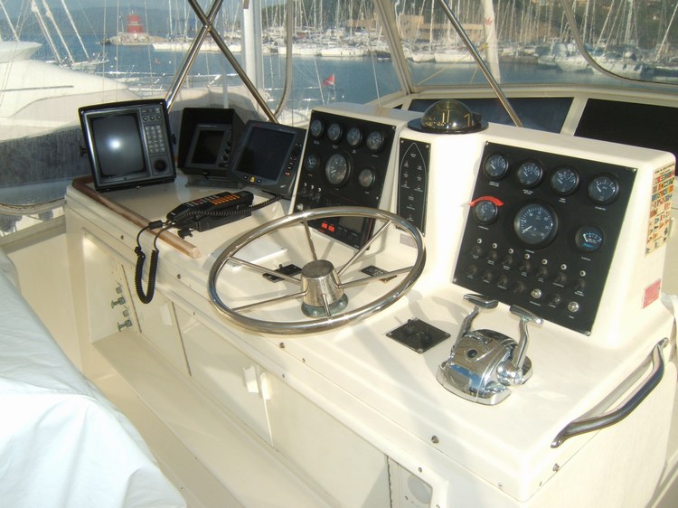 Notas internas-Nueva Alcántara azul sofás, fugato de piso teca en Maple blanco. Notas de la instrumentaciónSoftware de asignación de Eye4gps GPS -VHF + Sailor (2005)-profundidad sonar Furuno (2004) - Autohelm 7000 Autopilot-Gps/Chartplotter Lorenz 11 "Sol" (2004) - Radar Furuno.Notas de armamento-Onan generador-aire acondicionado-Passerella idraulica-oferta con p.c.-Controles electrónicos (2004) sobre la mosca y la maniobra en la segunda nevera Banco de cabina de la estación o congelador en el molinete nuevo de tabla de cabina en cabina y Monte 100 nuevos-cadena de hélices y cojines de proa de la mosca. |