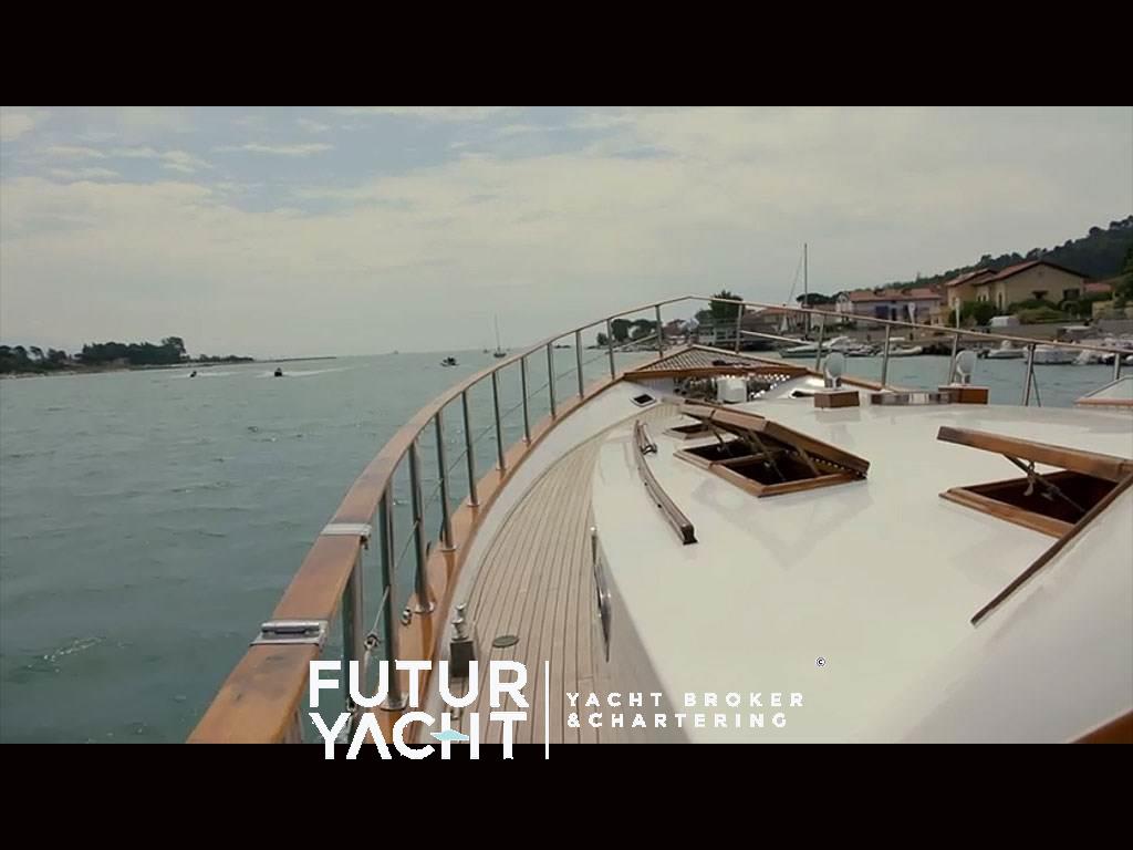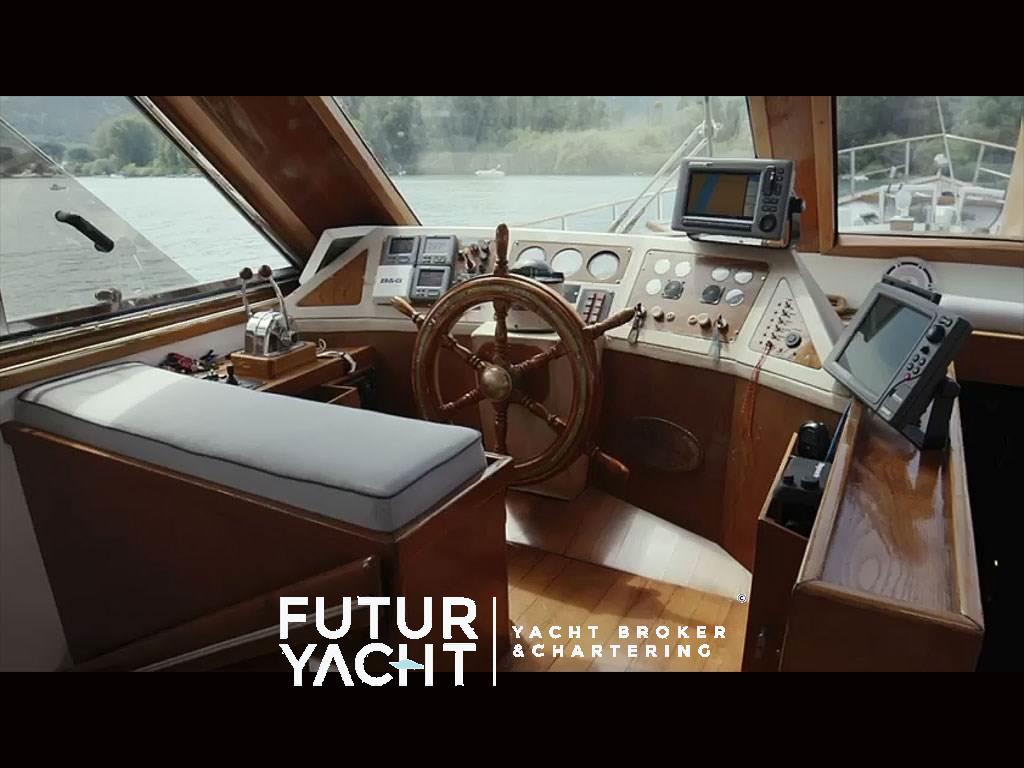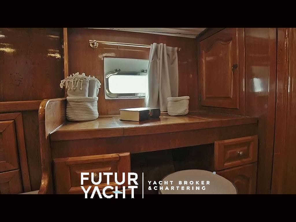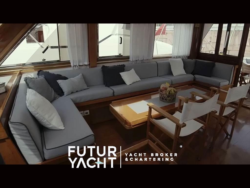 Notas internasNotas de la instrumentaciónAngolo barra, Antenna radar, Bussola, Contamiglia, Ecoscandaglio (Raymarine), GPS, Pilota automatico (Raymarine), Plotter (Raymarine C70), Radar, Radio VHF (Raymarine).Notas de armamentoAllestimento tecnico e di coperta:Allarme motore, Allarme sentina, Ancora (200 Kg con 100 mt di catena + ancora di rispetto), Camminamenti laterali in teak, Doccia esterna, Elica di prua - bow thruster, Faro orientabile, Impianto antincendio, Pannelli Solari, Passerella, Pompa di sentina automatica, Pompa di sentina manuale, Porta ingresso, Porta laterale, Pozzetto Teak, Presa 220V banchina, Presa acqua banchina, Salpa Ancore Elettrico, Scala reale, Tavolo pozzetto, Winch tonneggio di poppa (due), Winch tonneggio di prua (due). Dotazioni domestiche di bordo: Aria condizionata, Clima reversibile, Prese interne 12v, Prese interne 220v, Telecamera (in sala macchine), WC marino elettrico. Dotazioni di sicurezza: Zattera di salvataggio. Intrattenimento: Altoparlanti, Antenna Satellitare TV, Digitale Terrestre, Impianto TV, Stereo (LG), TV (nel salone). Cucina ed elettrodomestici: Asciugatrice (Elettrolux), Congelatore, Forno (Combinato), Frigorifero interno (In cuciana e nel salone), Lavastoviglie (Elettrolux), Lavatrice (Elettrolux), Piastra elettrica (4 fuochi ad induzione). Tappezzerie: Cuscineria completa. |