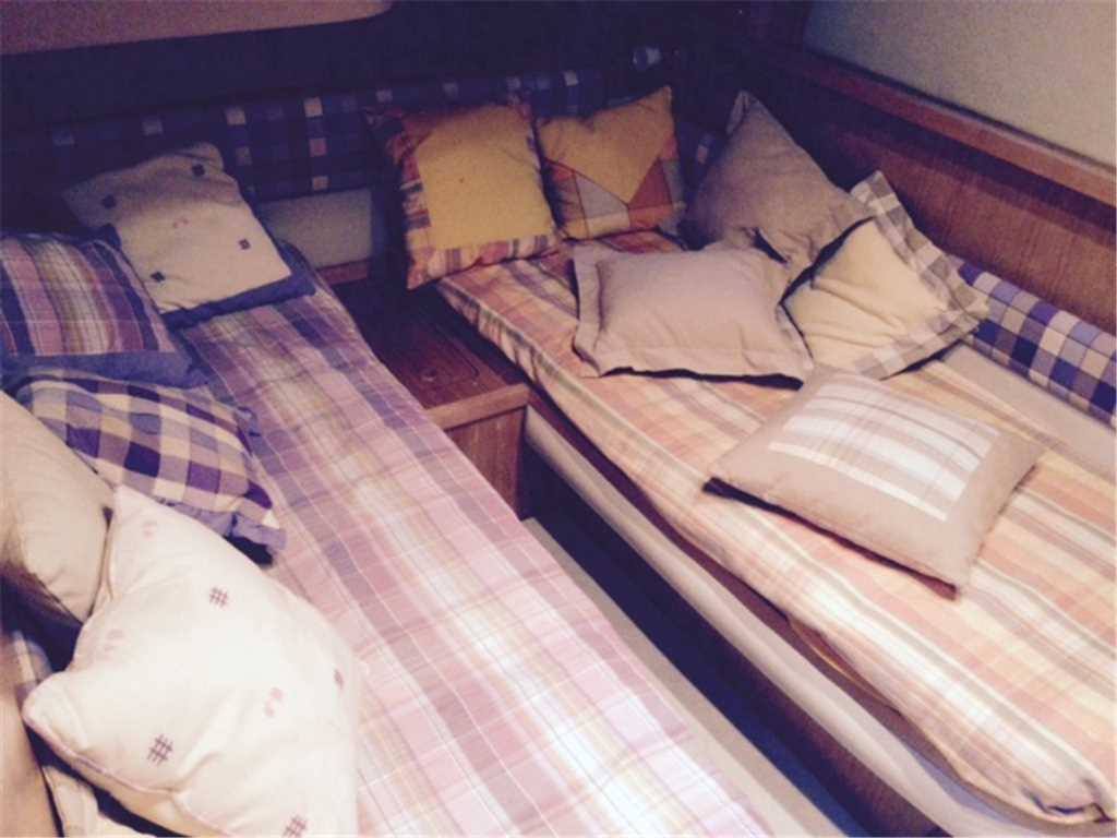 Notas internasCabine matrimoniali/Double cabins a prua Cabine doppie/twin cabins 1 in piano + 1 letti a L Cucina/Galley 2 fuochi Bagni/Bathrooms 2 Materiale interni/ Interior material legno Notas de la instrumentaciónVHF si Ecoscandaglio/Ecosounder si GPS si Pilota automatico/Autopilot si Radar predisposto Notas de armamentoImpianto stereo/ Stereo set doppioImpianto tv/ tv set si + t v 19 Tender mt 2,50 Motore fuorib./ Tender engine 8 hp Passerella/Gangway idraulica Elica di prua/Bow thruster si Raddrizzatore/Rectifier si Gruppo elettrogeno/Generator Onan 7 Kw Frigorifero/Refrigerator si Boiler 150 lt Tendalini sole/ Sun awning sul fly Cuscini sole/ Sun cushions si (nuovi 2014) |
