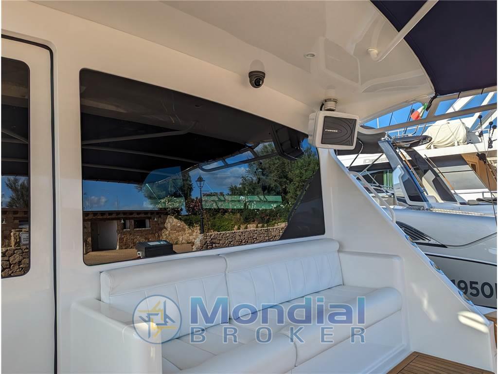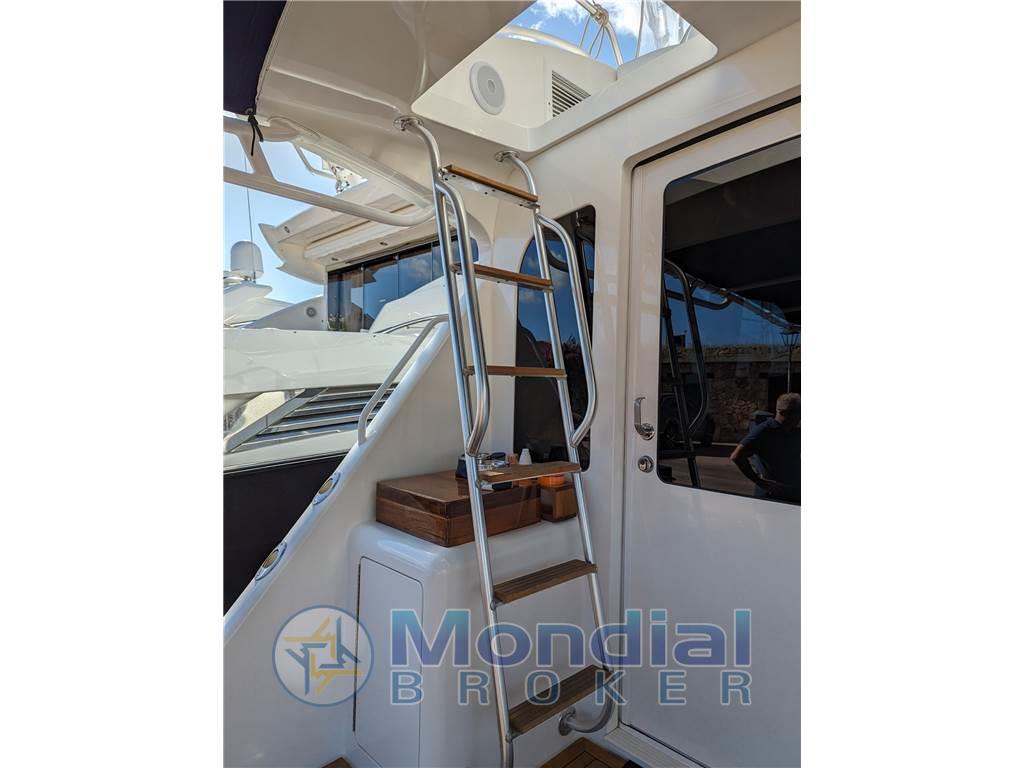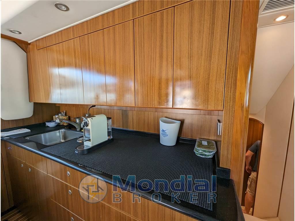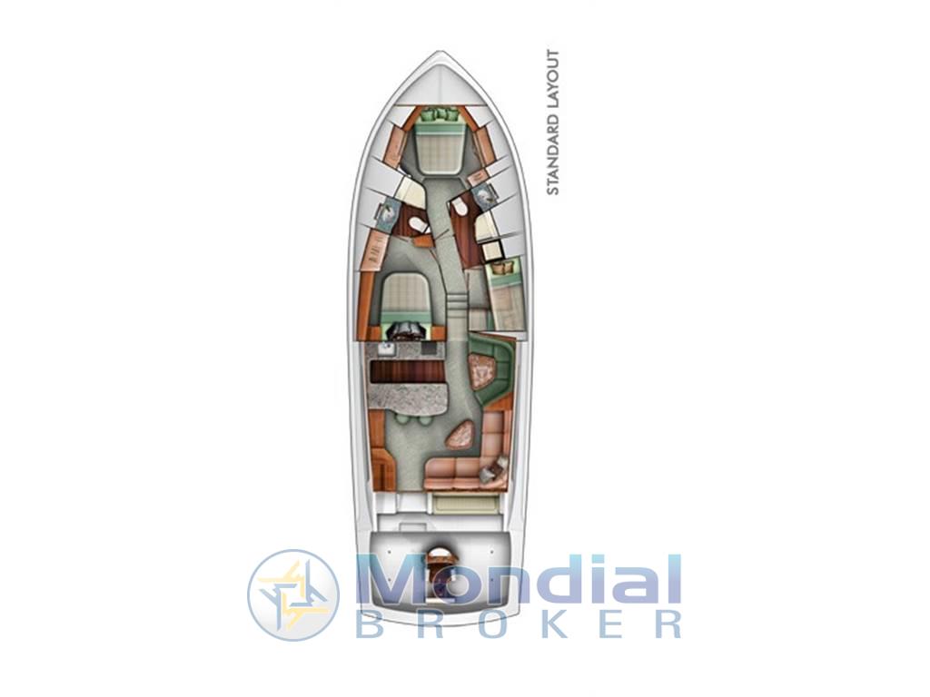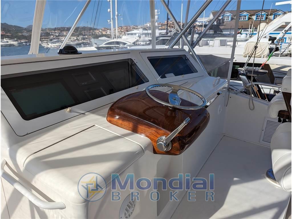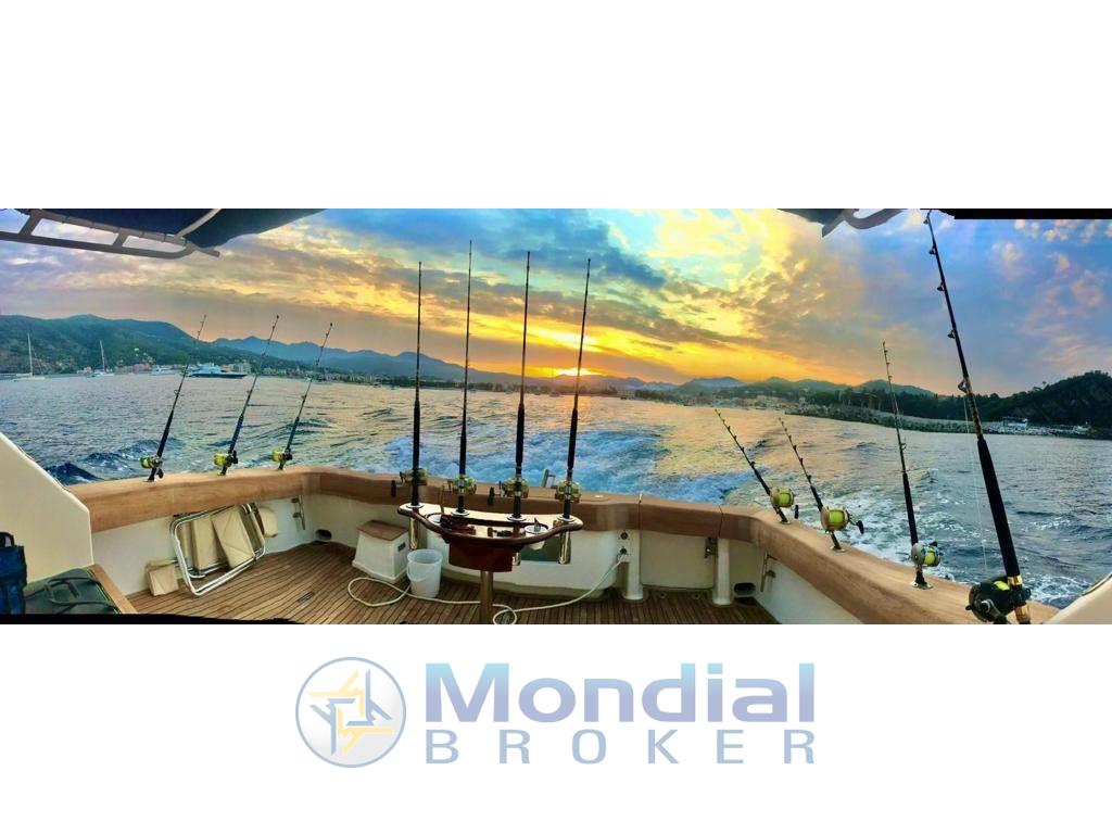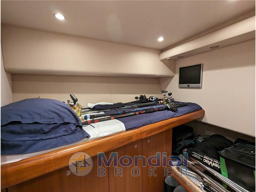 Notas de armamentoAntenna Satellitare TV, Aria condizionata (sia negli interni che sul Fly), Asciugatrice, Boiler (Bivalente), Clima reversibile, Congelatore, Cucina (elettrica), Cuscineria di prua, Cuscineria fly, 4 Decoder satellite, Digitale Terrestre, DVD, Fornello, 2 Frigorifero esterno, Frigorifero interno, Ghiacciaia, Home Theater (Bose), ICE Maker (con serbatoio dedicato), Impianto acque nere, Impianto TV, Lavastoviglie, Lavatrice, Microonde, Outriggers (Rupp doppia crocetta), Pavimento interno in legno, Portacanne (n. 6 sui fianchetti e n. 6 sui laterali verticali salone), Prese interne 12v, Prese interne 220v, Radio AM/FM, Serbatoio Acque Nere, Stereo (Impianto Bose), Telo copriconsolle, 2 Telo coprisedile, Tendalino (parasole di poppa), Trolling Valve, 4 TV (in salone e nelle cabine), Vasca del vivo (nello specchio di poppa), Vasca pescato (doppia , sul pavimento pozzetto), 2 WC marino elettrico (nei bagni con upgrade a bidet), Comandi elettronici in pozzetto , Trolling Valves , Doppia pompa timoneria , Pavimento cucina e dinette in Amtico , Trincarini in Teak , Tavolo convertibile sul Fly e teli oscuranti 4 lati , Tavolo maggiorato salone , Nome sullo specchio di poppa verniciato a mano , Scala accesso Fly con gradini in teak , Portaparabordi richiudibili a prua , Doppia serie lenzuola per tutte le cabine ,