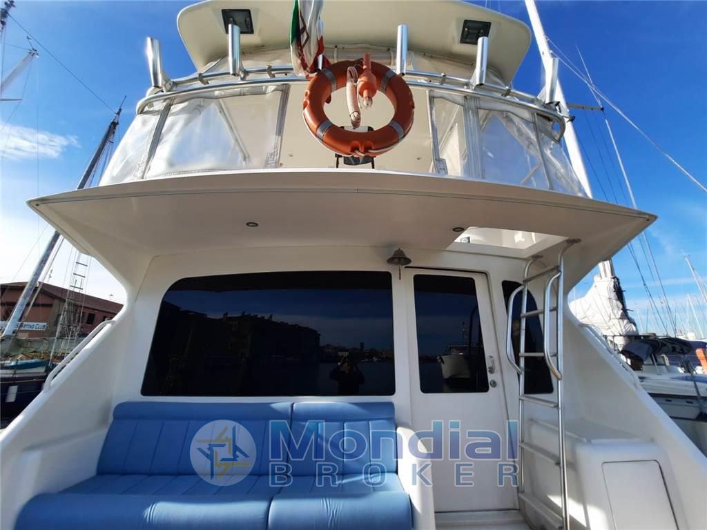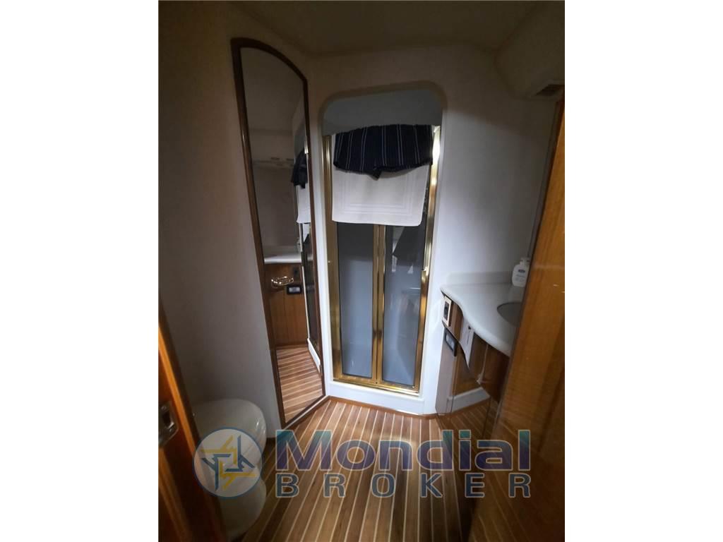 Notas internasNotas de la instrumentaciónAngolo barra, Antenna radar, Bussola, Comando motori elettronico, Computer di bordo (Moritz), Contametri catena, Display, Ecoscandaglio, GPS, Interfono, Pilota automatico, Radar, Radio VHF, SSB, Stazione vento, Yacht controller.Notas de armamentoAllestimento tecnico e di coperta:Allarme fumo/gas, Allarme motore, Allarme sentina, Ancora, Autogonfiabile, Bocche di Lupa, Doccia esterna, Elica di poppa - stern thruster, Elica di prua - bow thruster, Faro orientabile, Flap idraulici, Impianto antincendio, Indicatori Flaps, Lavaggio catena, Luci di cortesia, Luci subacquee, Passerella (iDRAULICA), Pompa di sentina automatica, Pompa di sentina elettrica, Porta ingresso, Pozzetto Teak, Presa 220V banchina, Presa acqua banchina, Rollbar, Salpa Ancore Elettrico, Scala reale, Scaletta da bagno, Sistema Depurazione acque nere, Tromba, T-Top, Winch, Winch Elettrico, Winch tonneggio di poppa, Winch tonneggio di prua. Dotazioni domestiche di bordo: Aria condizionata (doppio ciclo salone e cabine), BBQ/ Grill, Clima reversibile, Impianto acque nere, Prese interne 12v, Prese interne 220v, Riscaldamento, 3 WC marino elettrico. Intrattenimento: Altoparlanti, Decoder satellite, Digitale Terrestre, Home Theater, Impianto TV, Radio AM/FM, Ricevitore satellitare, Stereo, TV (salone a cabina armatoriale). Cucina ed elettrodomestici: Asciugatrice, Aspirapolvere centralizzato, Cucina, Fornello, Forno, Frigorifero interno, Ghiacciaia, Lavastoviglie, Lavatrice, Microonde, Piastra in vetroceramica. Tappezzerie: Cappottina, Cuscineria completa, Cuscineria di poppa, Cuscineria di prua, Cuscineria fly, Cuscineria Pozzetto, Teli chiusura T-Top, Teli copri finestra, Telo Copertura Fly, Telo copriconsolle, Telo coprisedile, Tendalino. |