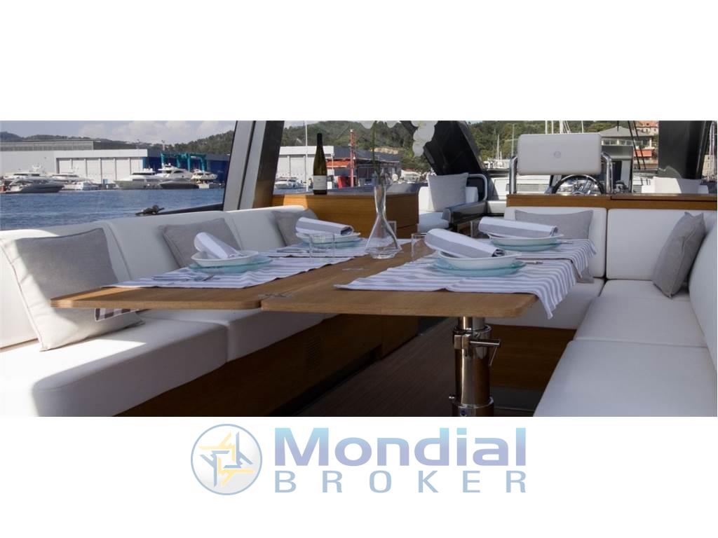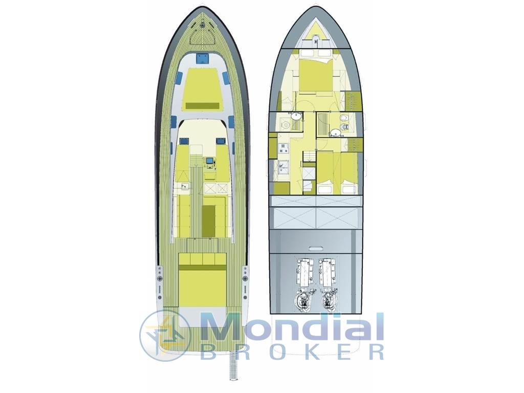 Notas de armamentoAltoparlanti, Antenna Satellitare TV, Aria condizionata, BBQ/ Grill, Boiler (80 litre calorifier driven by engine or via 220v immersion heater element.), Cassaforte, Clima reversibile, Congelatore, Cucina, Cuscineria completa, Decoder satellite, Digitale Terrestre, Frigorifero esterno, Frigorifero interno, Ghiacciaia, Home Theater, ICE Maker, Impianto acque nere, Impianto TV (LCD TV), Inverter, Lavatrice (LG), Macchina caffè, Pavimento interno in legno, Piastra elettrica, Prese interne 12v, Prese interne 220v, Radio AM/FM, Riscaldamento, Stereo (5+1 surround sound audio), Telo copriconsolle, Telo coprisedile, Tenda Elettrica, TV, 2 WC marino elettrico