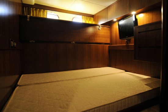 Notas internas3 baños cabina con cocina independiente con encimera 4 cuadrados quemador cerámico heladera con freezer Gril sobre la marcha Antena satelital reproductor de CD sistema de antena de tv LCD lavavajillas lavadora Notas de la instrumentaciónpiloto automáticoBrújula controles electrónicos FISHFINDER GPS-plotter Registro VHF Contador digital de la cadena Faro giratorio eléctrico sobre la marcha Notas de armamentoHélice de maniobra en el arcoManiobra de popa Eica sistema contra incendios Reversible aire acondicionado calefacción todavÃa cabrestante de escalera de baño Sistema de generador Pasarela hidráulica 2 deformación cabrestante en la popa Bimini en flay agua negra y gris sebatoy |