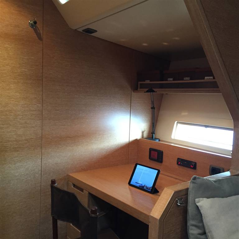 Notas internasLa cabina armatore è dotata di due letti queen size e un bagno en-suite. La seconda cabina (ospiti) con due letti singoli e bagno en-suite. cucina a poppa Notas de la instrumentaciónRaymarine AIS 50, 2 x fixed VHF, Sate tel, Mini sat C, 2 x MX GPS receivers, 2 x Raymarine hybrid touch Chartplotter, Navtex, B&G Hercules 3000: 7 x FFD, 8 x Analogues, 4 x 20/20, 1 x AutopilotNotas de armamentoSails: 3 Rande , 3 Genoa, Code Zero, Randa crociera , Trysail, Storm JibTender 3.6M Zodiac ; motore fuoribordo 25HP. |