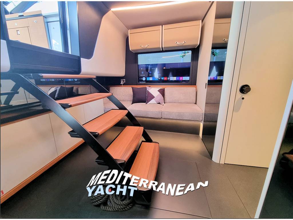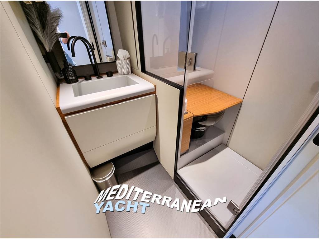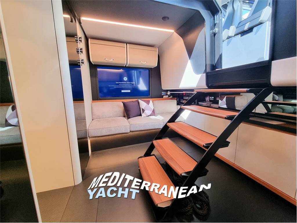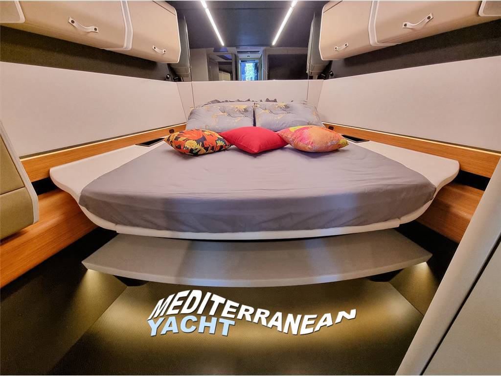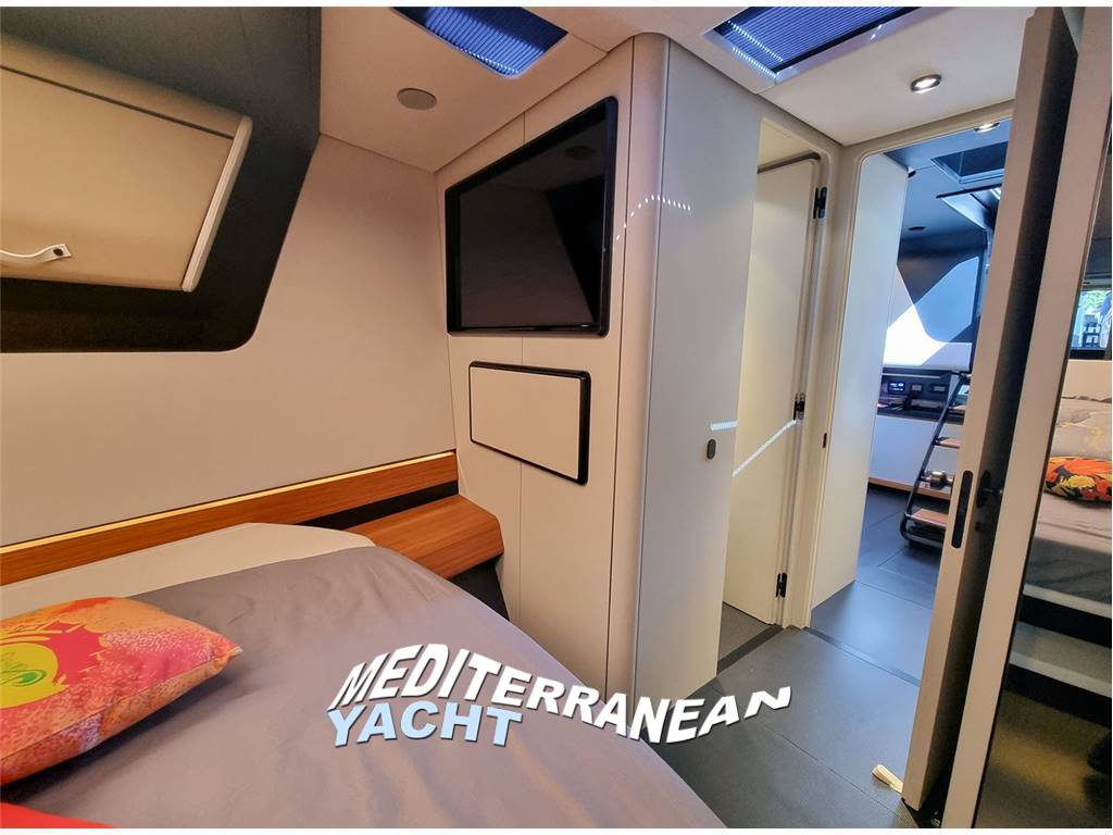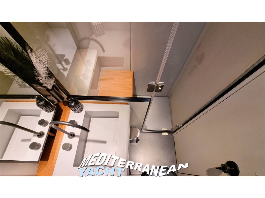 Notas internas- Dinette con due divani contrapposti - Bagno ospiti con cabina doccia. SUL PONTE: - Prendisole a poppa - Due divani contrapposti - Tavolo pranzo e sedie - Plancia di comando con due poltrone - Prendisole a prua Notas de la instrumentación- Radar Garmin- Due monitor multifunzione da 22" (radar-GPS/plotter-ecosonda) - VHF Garmin 315 - Joystich di manovra Notas de armamento- Aria condizionata CLIMMA per area interna ed esterna- Generatore MASE 15 Kw - Passerella idraulica a scomparsa con funzione scala bagno - Piattaforma di poppa idraulica ad immersione - Terrazze laterali (movimentazione idraulica) - Stabilizzatore giroscopico SEAKEEPER 9 - Dissalatore IDROMAR 130 l/h - Sistema di posizionamento dinamico VOLVO - Due oblò magic in dinette con telecamere esterne e funzione TV da 55" - TV ciruito chiuso con telecamera in area ancoraggio - Impianto Internet 4G - Impianto audio con altoparlanti JL + SUBWOOFER - Cappottina elettrica per lettino prendisole a poppa - Tenda sole con quattro pali in carbonio posizionabile a poppa o a prua - Inverter 2500W, 24V - Faro di ricerca 24V - Piano cottura a induzione, frigo/freezer, frigorifero a cassetto aggiuntivo e fabbricatore ghiaccio sul ponte - Luci subacquee bianche a poppa (3) e ai lati (2+2) - Contacatena digitale integrato sul display - Copertura impermeabile WALLY per console, sedute e lettini prendisole - Teli copertura parabrezza e laterali - Serbatoio acque nere |