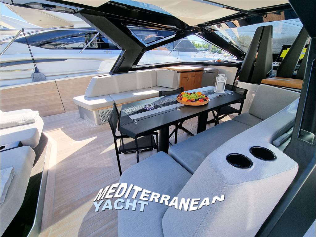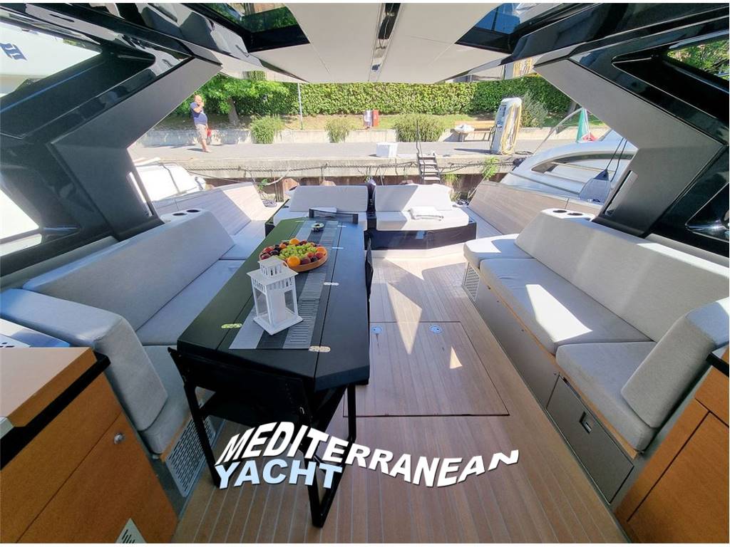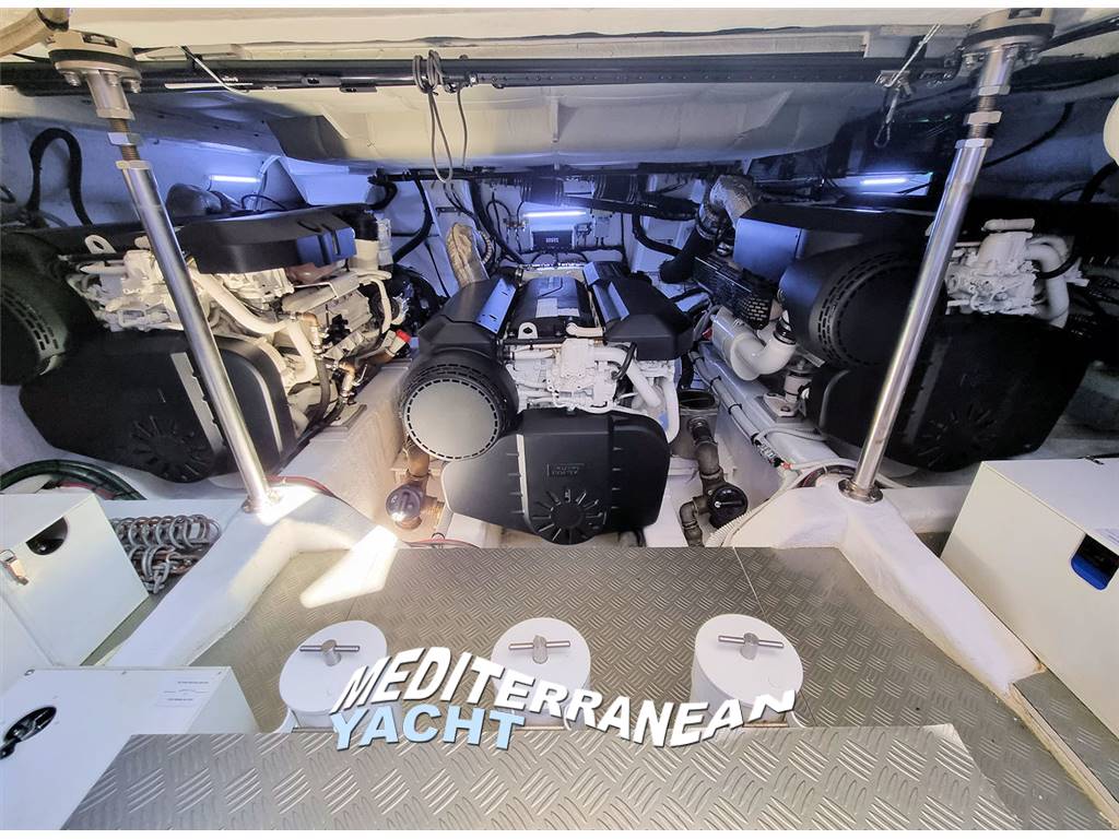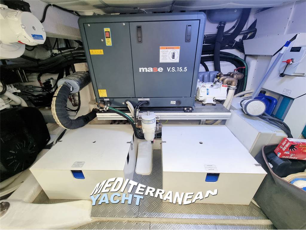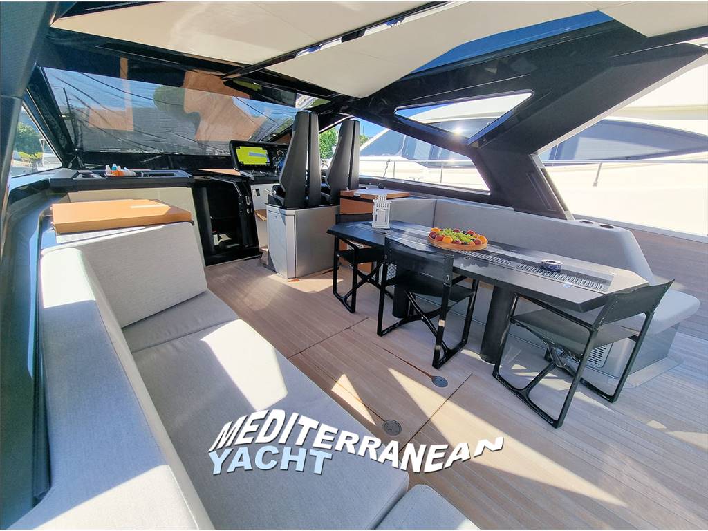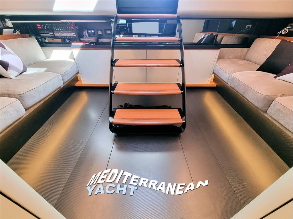 Notas internas- Dinette con due divani contrapposti - Bagno ospiti con cabina doccia. SUL PONTE: - Prendisole a poppa - Due divani contrapposti - Tavolo pranzo e sedie - Plancia di comando con due poltrone - Prendisole a prua Notas de la instrumentación- Radar Garmin- Due monitor multifunzione da 22" (radar-GPS/plotter-ecosonda) - VHF Garmin 315 - Joystich di manovra Notas de armamento- Aria condizionata CLIMMA per area interna ed esterna- Generatore MASE 15 Kw - Passerella idraulica a scomparsa con funzione scala bagno - Piattaforma di poppa idraulica ad immersione - Terrazze laterali (movimentazione idraulica) - Stabilizzatore giroscopico SEAKEEPER 9 - Dissalatore IDROMAR 130 l/h - Sistema di posizionamento dinamico VOLVO - Due oblò magic in dinette con telecamere esterne e funzione TV da 55" - TV ciruito chiuso con telecamera in area ancoraggio - Impianto Internet 4G - Impianto audio con altoparlanti JL + SUBWOOFER - Cappottina elettrica per lettino prendisole a poppa - Tenda sole con quattro pali in carbonio posizionabile a poppa o a prua - Inverter 2500W, 24V - Faro di ricerca 24V - Piano cottura a induzione, frigo/freezer, frigorifero a cassetto aggiuntivo e fabbricatore ghiaccio sul ponte - Luci subacquee bianche a poppa (3) e ai lati (2+2) - Contacatena digitale integrato sul display - Copertura impermeabile WALLY per console, sedute e lettini prendisole - Teli copertura parabrezza e laterali - Serbatoio acque nere |