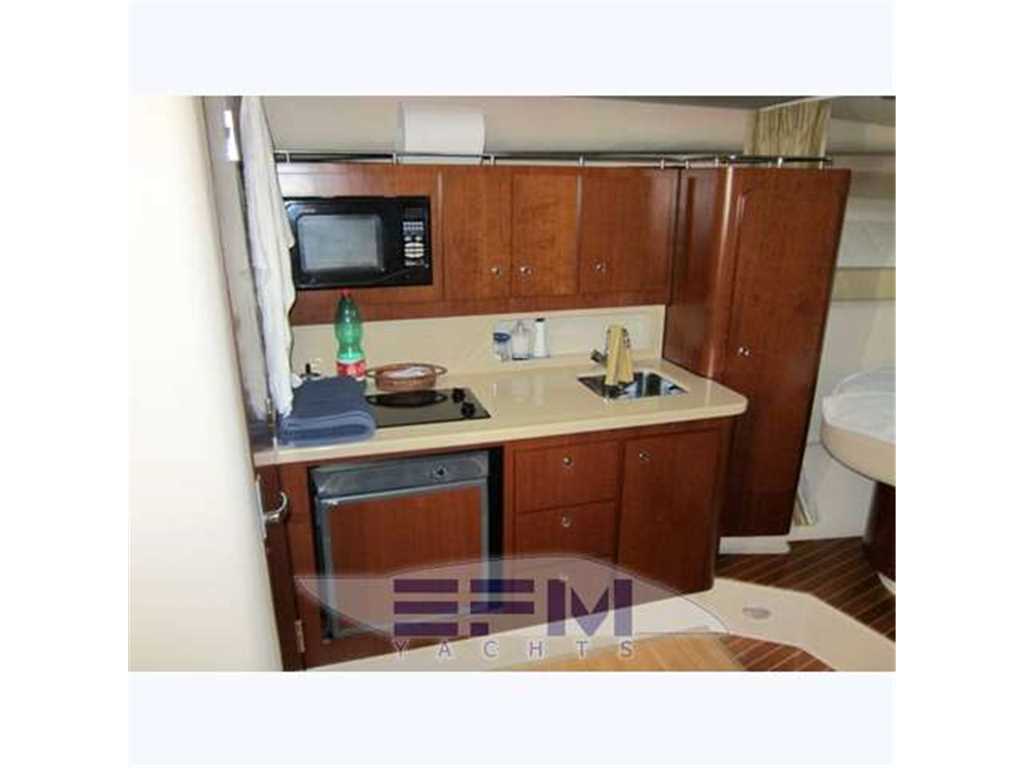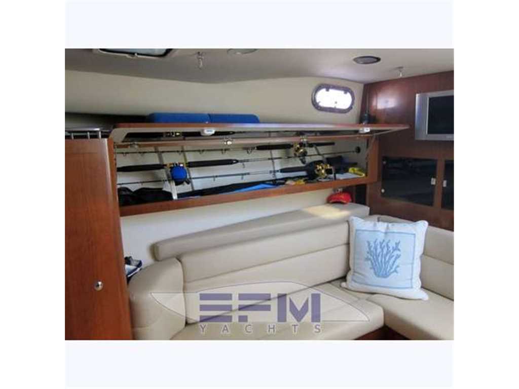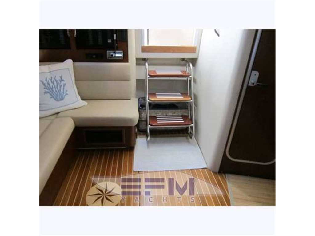 Grande et spacieuse à aire ouverte comprenant: un arc d'un lit grande île double, un canapé droite en forme de L en cuir se transforme en un deuxième lit, cuisine avec plancher en céramique de verre évier et plaque de cuisson, réfrigérateur et micro-ondes. Spacieuse Salle de bains avec WC, lavabo et douche. Grand cockpit est divisé en deux zones dont une avec sièges et le pilotage du «plus plus» libre et arrière équipés pour la pêche.
