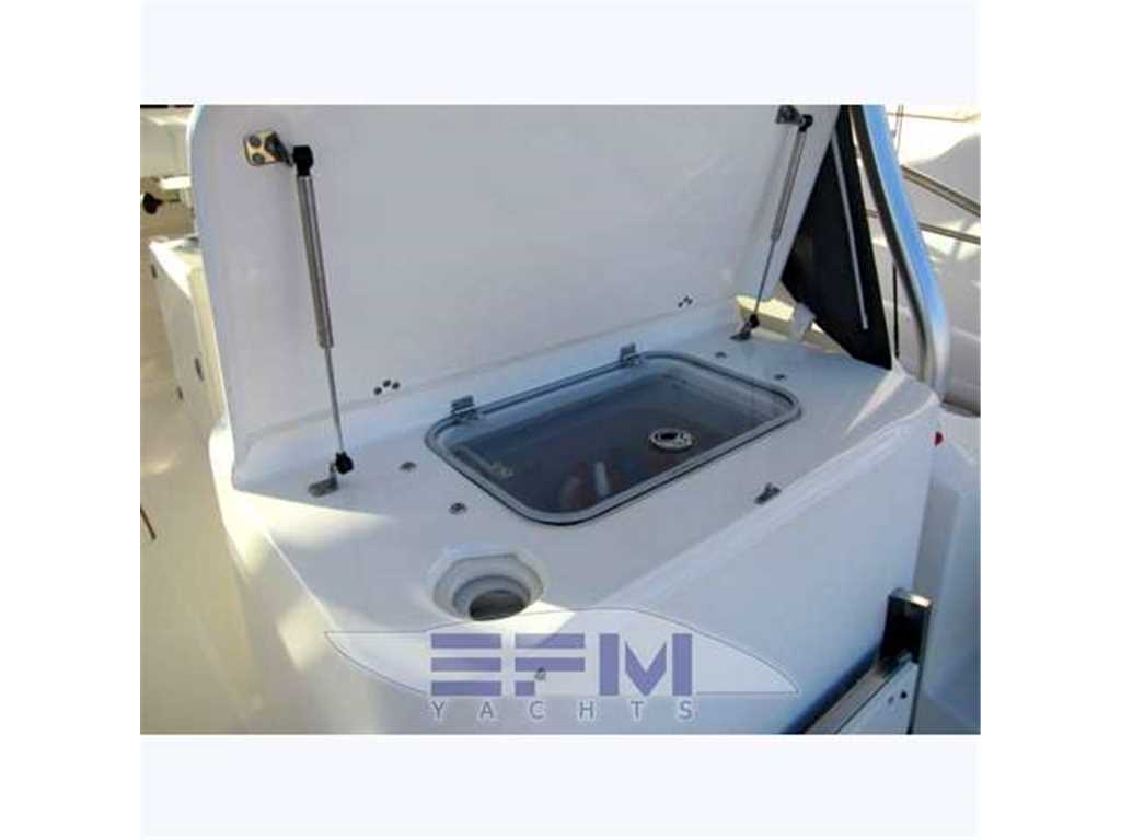 Notas internasGrande e spazioso open space composta da: a prua un grande letto matrimoniale ad isola, a diritta divano ad elle in pelle trasformabile in secondo letto, piano cucina a sinistra con lavello e piano cottura in vetro ceramica, frigo e microonde. Spazioso Locale bagno separato con wc, lavabo e doccia. Grande pozzetto suddiviso in 2 spazi uno con sedute e timoneria l' altro piu' a poppa libero e attrezzato per la pesca.