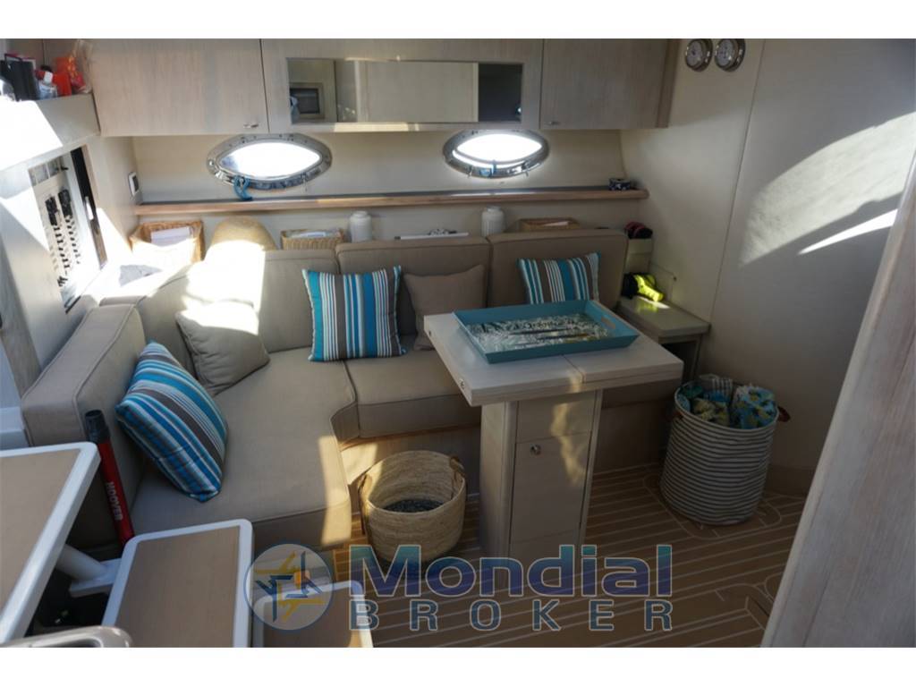 Notas internasAngolo cucina con doppio frigo, dinette con divano ad L. Prendisole a prua, divano in pozzetto trasformabile in prendisole. Notas de la instrumentaciónGPS, Vhf, autopilotaNotas de armamentoPasserella elettroidraulica, generatore Mase 7,5 Kw, aria condizionata, doppio frigo in cucina, verricello elettrico, cappottina di chiusura, cuscineria completa, caricabatteria. |