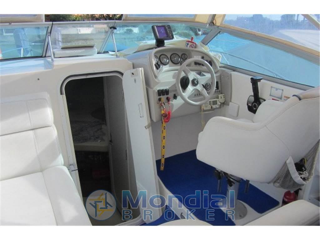 Notas internasNotas de la instrumentaciónBussola, Ecoscandaglio, GPS, Radio VHF.Notas de armamentoAllestimento tecnico e di coperta:Doccia esterna, Flap idraulici, Impianto antincendio, Indicatori Flaps, Luci di cortesia, Passerella, Piattaforma, Pompa di sentina automatica, Pompa di sentina manuale, Presa 220V banchina, Rollbar, Salpa Ancore Elettrico, Scaletta da bagno, Tavolo pozzetto. Dotazioni domestiche di bordo: Aria condizionata, Prese interne 12v, Prese interne 220v, WC marino manuale. Intrattenimento: Altoparlanti, Decoder satellite, Digitale Terrestre, Stereo, TV. Cucina ed elettrodomestici: Cucina, Fornello, Frigorifero interno, Microonde. Tappezzerie: Cappottina, Copripozzetto, Cuscineria completa, Cuscineria di poppa, Cuscineria di prua, Cuscineria Pozzetto, Telo copriconsolle, Tendalino. |
