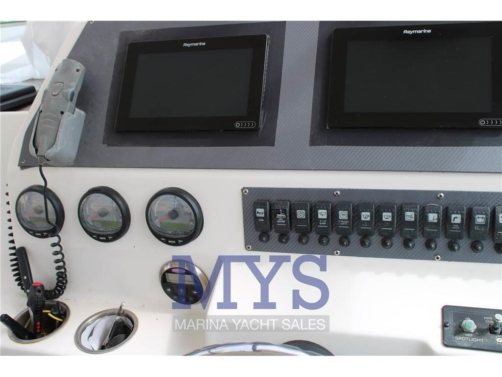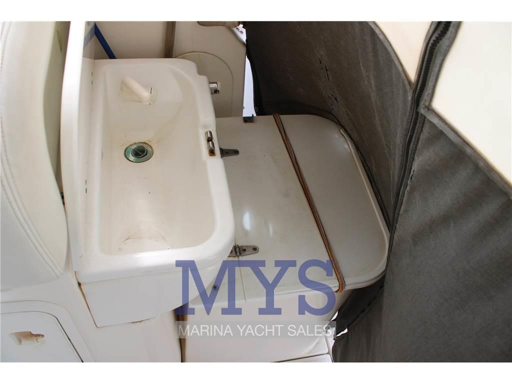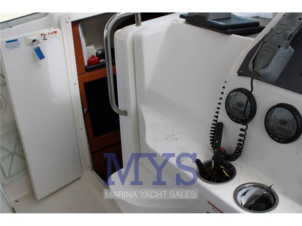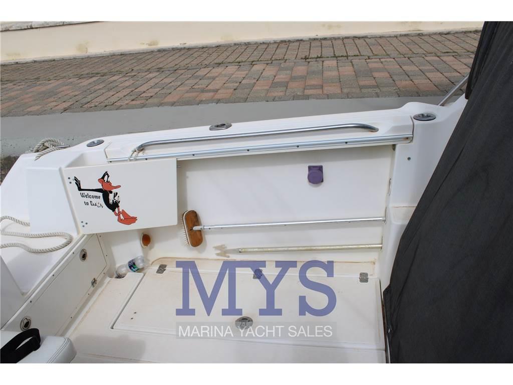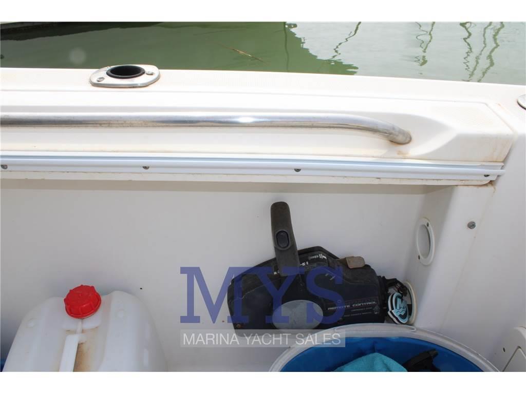 Notas internas1 BAGNO 1 Cabina con letto alla francese di poppa 1 Cabina matrimoniale a V di prua 2 Letti singoli a Pullman a prua 1 Cucina completa di lavandino,fuochi a alcol/elettrici, frigo e micronde 1 Bagno completo di lavabo,doccia e WC marino elettrico Notas de la instrumentaciónAllarme motoreAltoparlanti Aria condizionata Antenna radar Autoclave Boiler Batterie Bussola Caricabatterie Comando motori elettronico Ecoscandaglio Faro orientabile Flap idraulici GPS Indicatori Flaps Inverter Luci di cortesia Motore ausiliario Pilota automatico Radar Raddrizzatore Riscaldamento Salpancora Elettrico Stereo Tromba VHF Notas de armamentoAncoraCopripozzetto Cuscineria completa Doccia esterna Lavandino nel Pozzetto Panche abbattibili Portacanne Presa 220V banchina Scaletta da bagno T-Top Teli chiusura T-Top Vasca del vivo Vasca pescato |