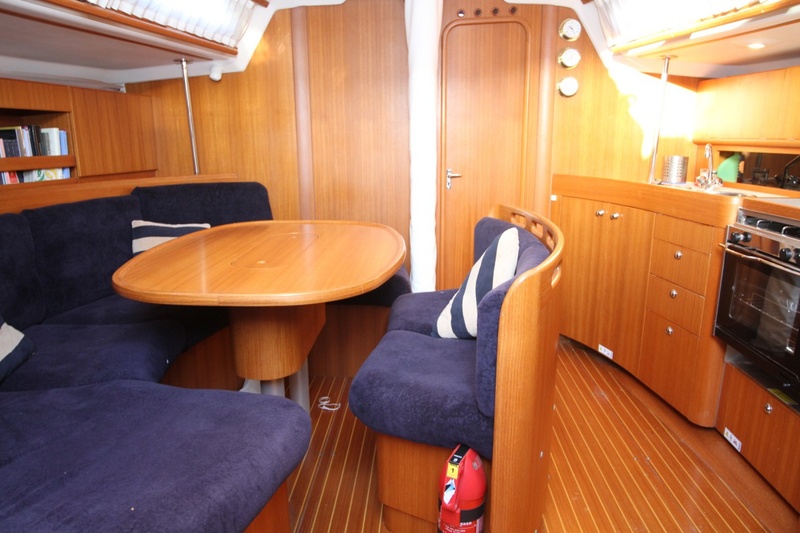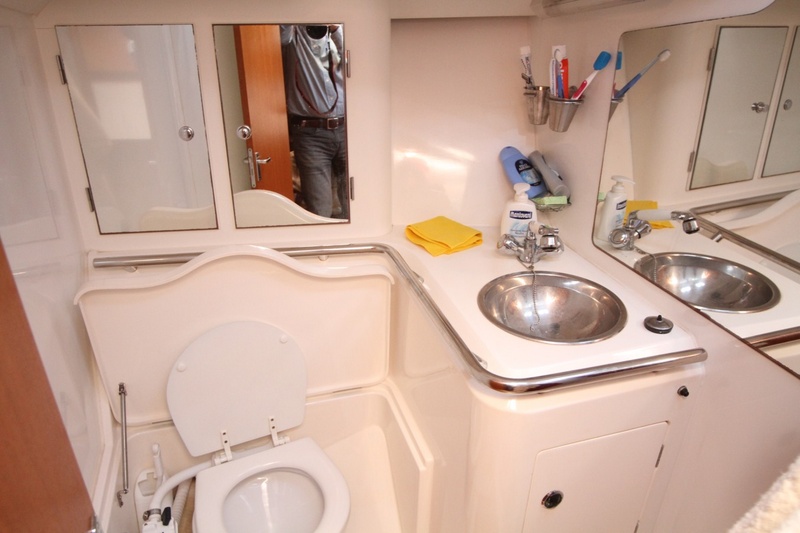 Notas internas3 cabinas (6 + 2 en dinette personas) y 2 baños cocina con horno encimera 2 murata derecha electrobox Kenwood Stereo con reproductor de CD/MP3, 4 altavoces en el poder de la cabina 2 cable Descripción de la teca de la cubierta exterior completo carlinga teca Pilar Whitlock con volante herramientas y acero con salpicaduras de tela del toldo cubierta azul marino Copripoppa campana en tela azul plegable y cabina mesa plegable en cabina cojines post caliente/frÃa ducha en escalera de baño retráctil del plegable de la cabina en el travesaño