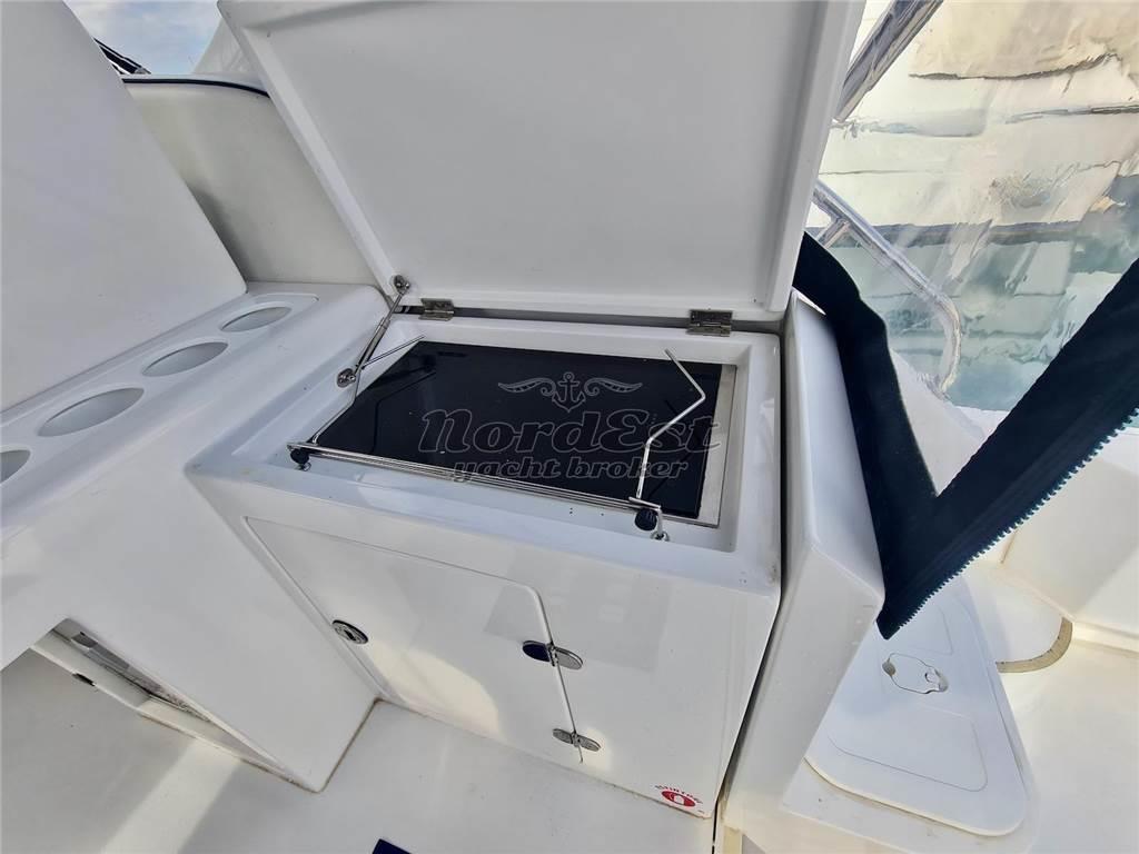 Notas internasImpianto stereo Impianto TV Tv Bagni: 1 Cabine: 1 Posti letto: 4 Cucina Frigorifero Ice maker Piano Cottura: 1 Notas de la instrumentaciónPilota automatico: Presente Ecoscandaglio: Presente GPS: Presente Plancetta: in teak Vhf: Presente Notas de armamentoDESCRIZIONE IMPIANTISTICA acque grigie, acque nere, n. 2 piani cottura ad induzione (esterno / interno) n.2 frigoriferi, trolling valve, 20 porta canne, vasca del vivo, luci subacquee. ----- Impianto antincendio Copertura pozzetto Cuscineria prendisole Doccia esterna Flaps Frigorifero esterno Luci di cortesia Luci subacquee Riscaldamento Zattera di salvatagio |