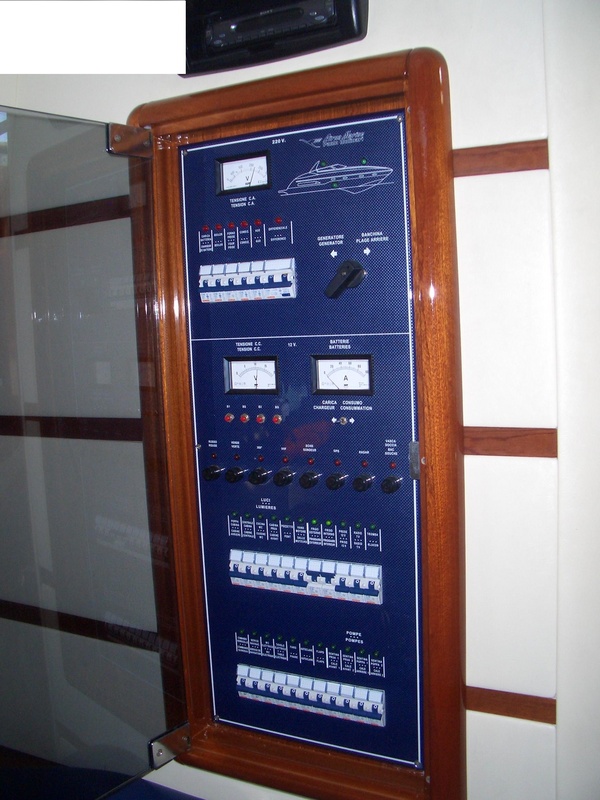 Notas internasNotas de la instrumentaciónBrújula, instrumentación completa, Horn, normas de navegación, cuadro eléctrico con martillos, cargo, baterÃa corte ripartirore, 12V, gps, plotter, sonar de profundidad, vhf.Notas de armamentoMaquinilla eléctrica, plataforma de popa, teca apertura motores hidráulicos de hood, agua caliente, nevera, racor pre-filtrado externo soláriums, cerró celda, toldo cubierta de cabina, toldo en el pasillo hidráulico stern y arco, seguro de Caldera, BOWTHRUSTER, con grúas para ligera, madera de teca. |