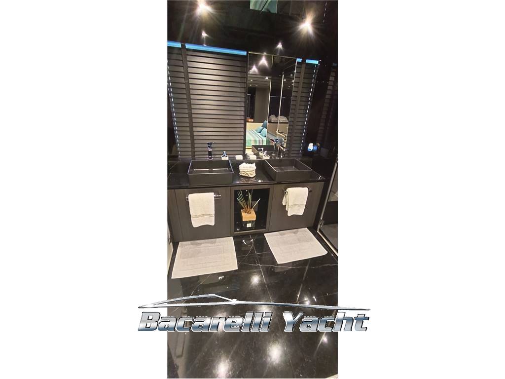 Notas internasSi presenta nel seguente allestimento: 2 cabine armatoriali all'italiana 2 cabine doppie in piano 2 cabine Crew 2 bagni con cabina doccia 2 bagni servizio Crew 2 bagni di servizio. __________________________ The Arcadia Sherpa 80 XL: It comes in the following layout: 2 Italian master cabins 2 double flat cabins 2 crew cabins 2 bathrooms with walk-in showers 2 crew toilets 2 service bathrooms. Notas de la instrumentaciónAngolo barra, Antenna radar, Auto Dynamic Trim Interceptor, Bussola, Camminamenti laterali in teak, Comando motori elettronico, Computer di bordo, Contamiglia, Display (additional), Doccia esterna (FLOOR SHOWER POOL WITH WATER INLET ON THE BOTTOM), Ecoscandaglio, Elica di prua - bow thruster, Garage per tender (in starboard side), 2 GPS (16" Multifunction display), Impianto Aria Compressa (in garage), 2 Joystick (with second station in cockpit), Log, Luci di cortesia, 11 Luci subacquee, Passerella (hydraulic retractable), Piattaforma (in teak with trasformer Opacmare system 600 Kg), Pilota automatico, Pozzetto Teak (and skylounge teak floor), Radio VHF, Sedile Copilota, Sistema Depurazione acque nere, Sistema di posizionamento dinamico, Stabilizzatori (Fins), Tavolo pozzettoNotas de armamentoPlancietta idraulica traformer , bimini top , cassaforte , elica di pura , dissalatore e generatore, ice maker , impianti di scarico separati , telecamere motori e manovra , impianto stereo in tutti gli ambienti , tender, e molto altro tutto documentato da cantiere con libretti tecnici annessi .Traformer hydraulic platform, bimini top, safe, pure propeller, water maker and generator, ice maker, separate exhaust systems, engine and maneuver cameras, stereo system in all environments, tender, and much more, all documented by the shipyard with annexed technical booklets |