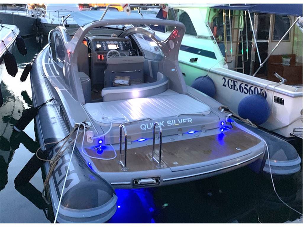 Notas de armamentoDue frigoriferi, autoclave e boiler acqua calda,, contacatena, 50 metri di catena acciaio, wc nuovo 2022, Tientibene di poppa, a prua e sulla tuga, Cuscineria prendisole di poppa, Doppio bottaccio perimetrale, Doppio gavone prodiero per cime, parabordi, Impianto doccia, Cucina, frigorifero a incasso, Kit di riparazione+pompa di gonfiaggio manuale, n. 4 bitte d'ormeggio, n.16 gavoni, n. 2, Pannelli elettronici di comando (24 funzioni), salpa-ancora elettrico, Ripartitore automatico di carica batterie, Due batterie di avviamento motori, Batteria servizi di bordo, Impianto antincendio automatico, Pompa di sentina manuale, Pompa di sentina automatica, Pompa di gonfiaggio elettrica, Presa accendisigari 12 volt (n.4), Punti per il sollevamento a prua, Roll-Bar e archi VTR con luci di via, Sedile di guida tipo stand-up, n. 2 Serbatoi carburante (500 litri complessivi), Plancia di poppa con gavone per passerella e scaletta inox estraibile, Tessuto neoprene/Hypalon 1670 dtex, Timoneria servoassistita, Tromba pneumatica, Ancora inox e catena inox, Boiler per acqua calda, Bussola, Cuscineria cabina di prua, Inverter con due prese 220 v, carica batterie con presa 220 V da banchina, Kit luci ambientazione, Kit luci pozzetto, Tavolo pieghevole in teak, Impianto acque nere.