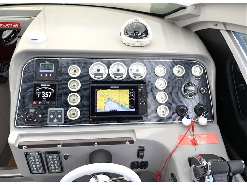 Notas de la instrumentaciónStrumentazione motori, manette elettroniche, GPS-plotter, pilota automatico, faro orientabile, vhf, elica di prua, impianto audio super Fusion.