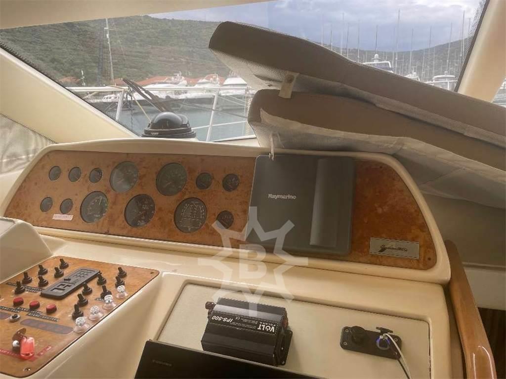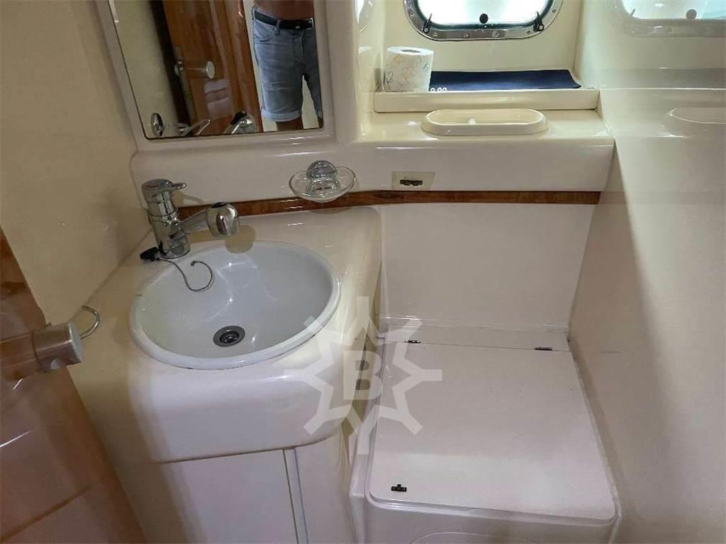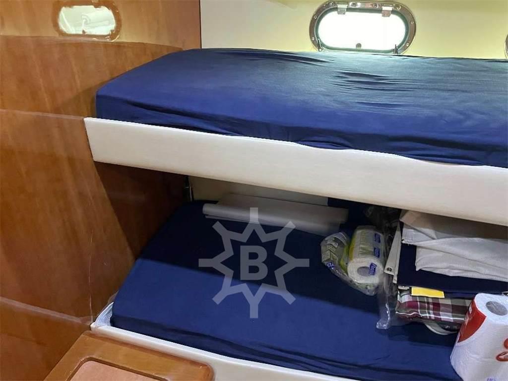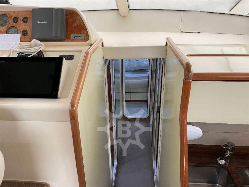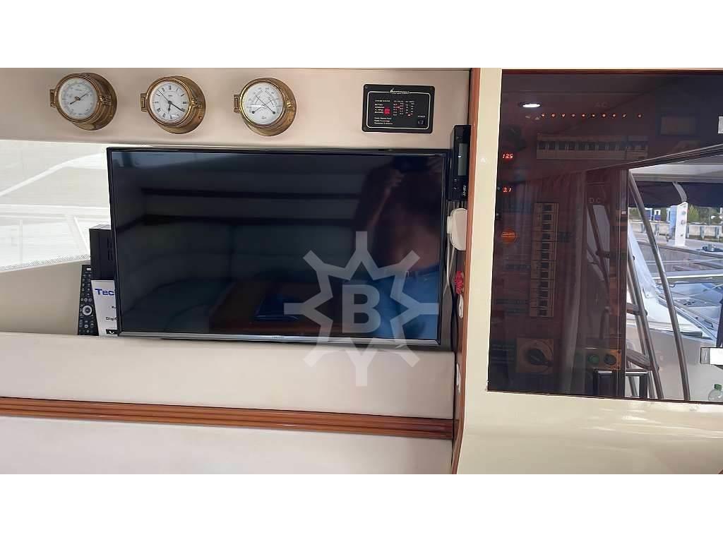 Notas internasNotas de la instrumentaciónAntenna radar, Autoclave, Autogonfiabile, Batterie, Bussola, Comando motori elettronico, Contamiglia, Doccia esterna, Doppia timoneria, Ecoscandaglio, Elica di poppa - stern thruster (Vetus), Elica di prua - bow thruster (Vetus), Faro orientabile, Flap idraulici (N°2), Gruette, Lavaggio catena, Luci subacquee, Passerella (idraulica), Piattaforma (in teak), Plotter con antenna GPS, Pompa di sentina automatica, Pompa di sentina manuale, Pozzetto Teak, Radar, Raddrizzatore, Radio VHF, Rollbar, Salpa Ancore Elettrico, Scaletta da bagnoNotas de armamentoAntenna Satellitare TV, Aria condizionata (regolabile separatamente), Bimini (doppio sul fly), Boiler, Cucina, Cuscineria completa, Cuscineria di poppa, Cuscineria di prua, Cuscineria fly, Cuscineria Pozzetto, Forno, Frigorifero interno (N°2 120 lt.), Giubbetti di salvataggio, Impianto TV, Piastra elettrica, Riflettore Radar, Stereo, Teli copri finestra, Tendalino (ombreggiante a poppa), TV, WC marino elettrico |