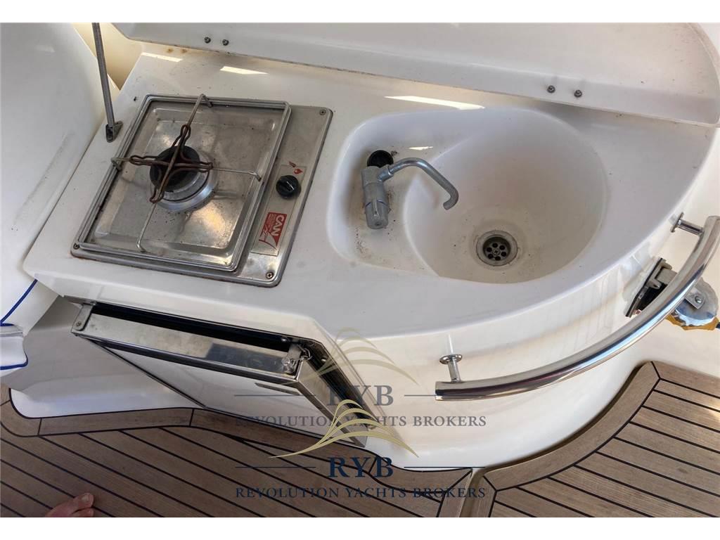 Notas internasNotas de la instrumentaciónComando motori elettronico, Computer di bordo, Ecoscandaglio, GPS, Radio VHF.Notas de armamentoAllestimento tecnico e di coperta:Allarme motore, Ancora, Doccia esterna, Elica di prua - bow thruster, Flap idraulici, Lavandino nel Pozzetto, Piattaforma, Pompa di sentina elettrica, Porta ingresso, Pozzetto Teak, Presa 220V banchina, Rollbar, Salpa Ancore Elettrico, Tavolo pozzetto. Dotazioni domestiche di bordo: Impianto acque nere, WC marino manuale. Intrattenimento: Altoparlanti, Impianto TV, TV. Cucina ed elettrodomestici: Cucina, Frigorifero esterno, Frigorifero interno, Piastra in vetroceramica. Tappezzerie: Bimini, Cappottina, Cuscineria completa, Cuscineria di poppa, Cuscineria di prua, Cuscineria Pozzetto, Tendalino. |