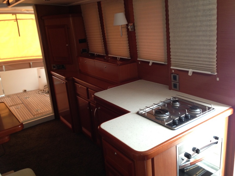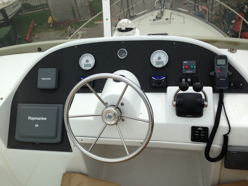 Notas internasNotas de la instrumentaciónGPS Raymarine Gps Raymarine E 120 y 80 en el flybridge eco del Radar de Raymarine Sonda Raymarine Raymarine piloto automático Raymarine Vhf electrónico esposas aletas Helice de proa calefacción Webasto agua calentador agua caliente torno eléctrico cargador de muelle Radio cdNotas de armamentoCojines coprivetri full full hojas exteriores toldos cubriendo cabina noruego flybridge Bimini top bañera de teca y plataforma de baño |