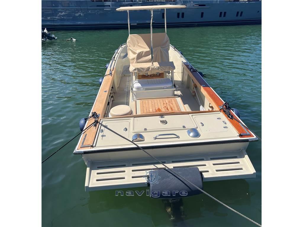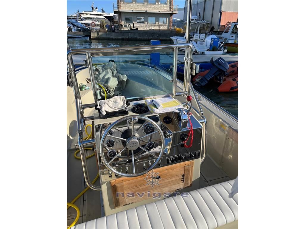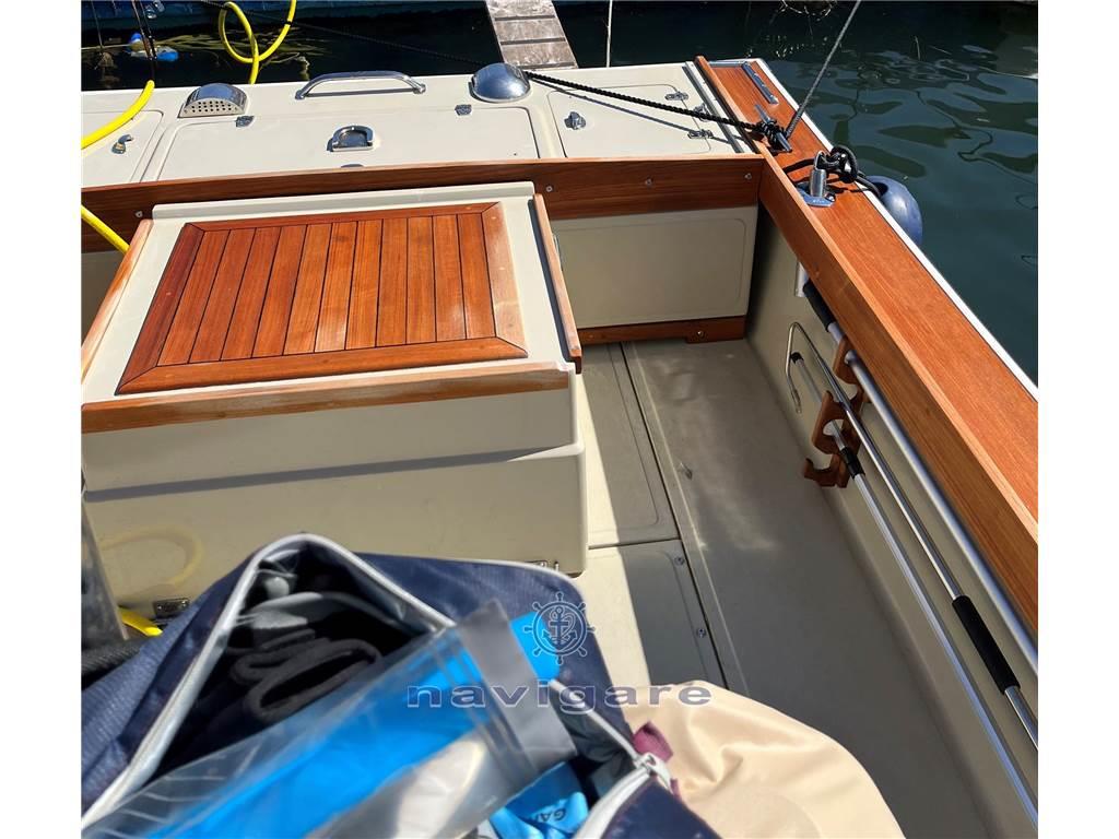 Notas internasNotas de la instrumentaciónBussola, Ecoscandaglio, GPS, Radio VHF.Notas de armamentoAllestimento tecnico e di coperta:Allarme motore, Luci di cortesia, Pompa di sentina automatica, Pompa di sentina elettrica, Presa 220V banchina, Salpa Ancore Elettrico, Scaletta da bagno, T-Top. Dotazioni domestiche di bordo: Prese interne 12v. Tappezzerie: Cuscineria completa, Telo copriconsolle. |
