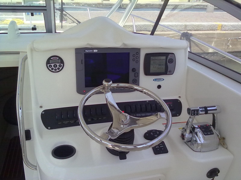 Notas internasNotas de la instrumentación+ gps plotter Raymarine cartucho de color C120, VHF Raymarine, flaps, sonda, corredera, foco de búsqueda, brújula magnéticaNotas de armamentoduro de fibra de vidrio superior, barra de soportes de aluminio, cabestrante eléctrico con la música y la cabina de mando, autoclave, arco, el tanque de peces, pecera de banco plegable a popa, fregadero, bolsillos exteriores, cocina vtrc interno, microondas, Coria arriba , equipo de música cd + internos y externos ubicación en los controles de tablero de instrumentos, espejo retrovisor, cargador de baterÃas, generador de diesel diesl Kohler 4 kw, filtro de aceite, filtros de gasolina de salida 220v, cojines para arco, eléctricos y bombas de achique manual, caña de pescar al aluminio arriba t ducha exterior, bomba de achique automática, la puerta delantera, t-top cortinas cerradas, la cubierta de consola, cuerno, madera en el interior, la pasarela de aluminio, en el centro frente a la ventana-electro, el agua directamente desde el muelle, balsa en 2010, equipo de seguridad . |