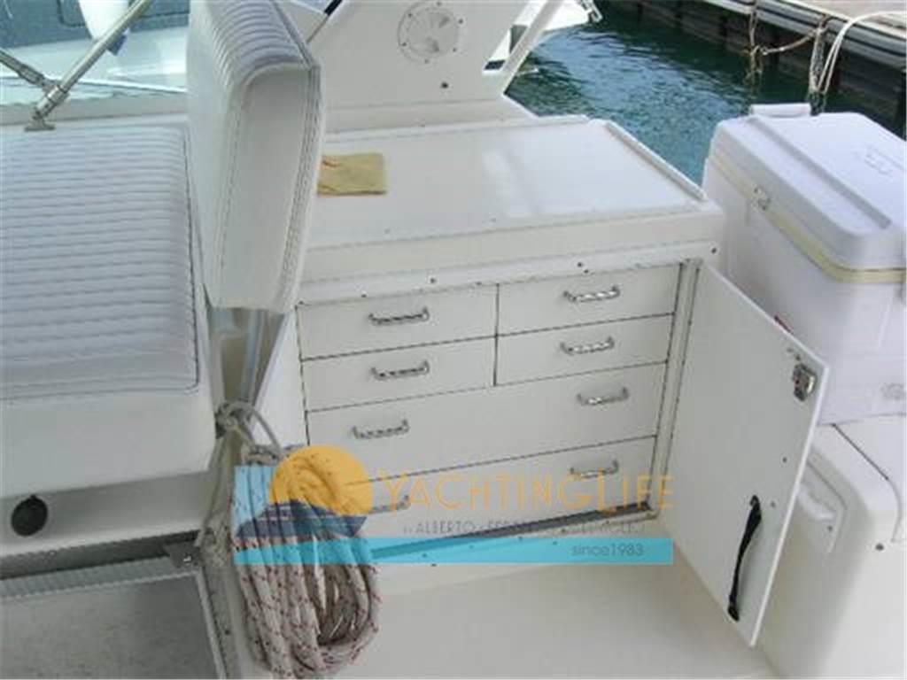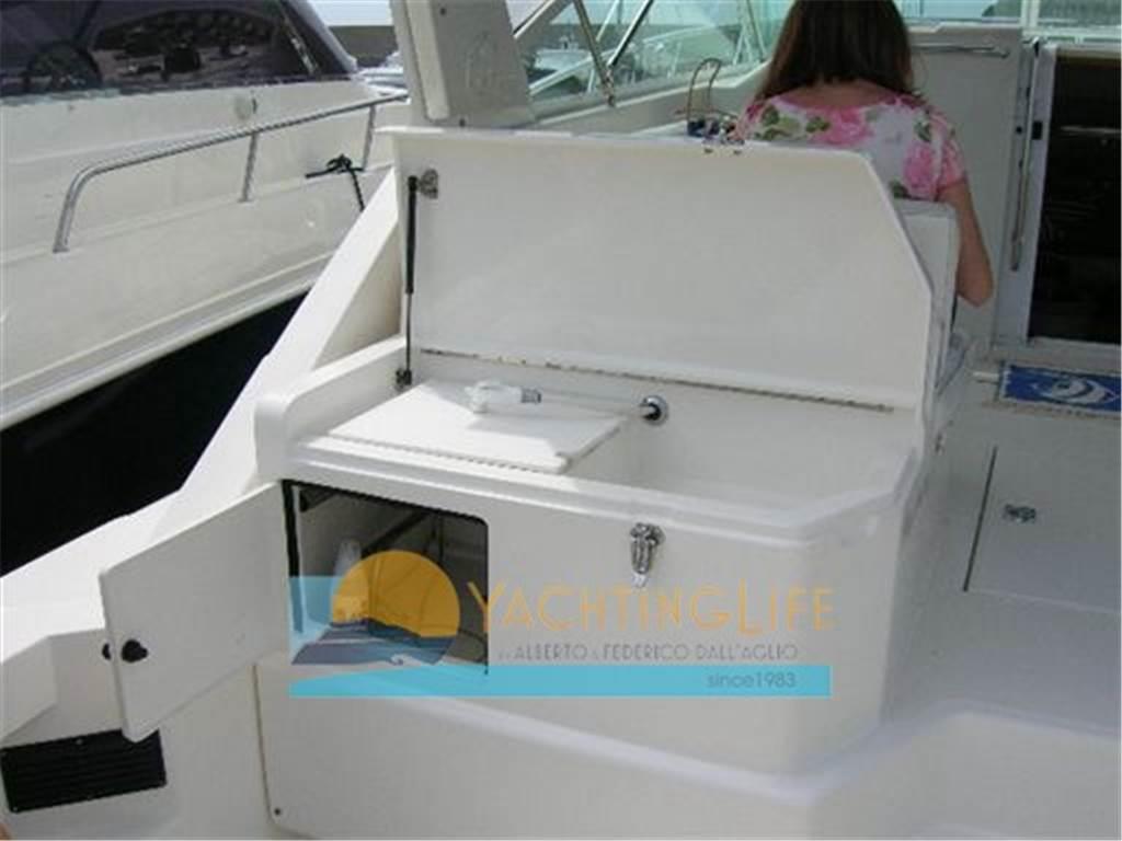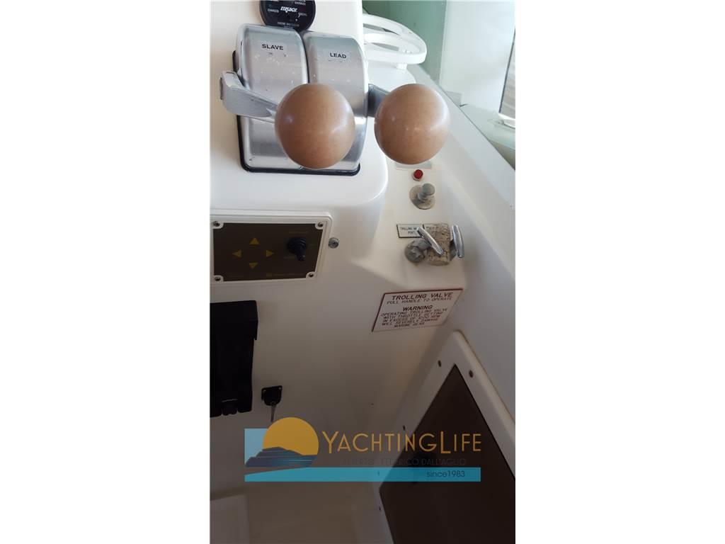 Notas internasNotas de la instrumentaciónAllarme motore, Ancora, Autoclave (N. 1), Autogonfiabile, Batterie, Bussola, Caricabatterie, Colorazione speciale (Blu), Contamiglia, Doccia esterna, Ecoscandaglio (Raymarine Dragonfly), Flap idraulici (N. 2), Impianto antincendio, Luci di cortesia, Passerella (Manuale), Piattaforma, Pilota automatico (Robertson Ap20), Plotter con antenna GPS (Raymarine), Pompa di sentina automatica, Pompa di sentina manuale, Porta ingresso, Presa 220V banchina, Radio VHF (Shipmate), Rollbar, Salpa Ancore Elettrico, Scaletta da bagno, TrombaNotas de armamentoAltoparlanti, Boiler, Cappottina (Blu), Clima reversibile, Cucina, Cuscineria completa, Frigorifero interno, ICE Maker, Microonde, Piastra elettrica (2 fuochi), Portacanne, Prese interne 12v, Prese interne 220v, Stereo, Trolling Valve, Vasca del vivo, Vasca pescato, WC marino elettrico |
