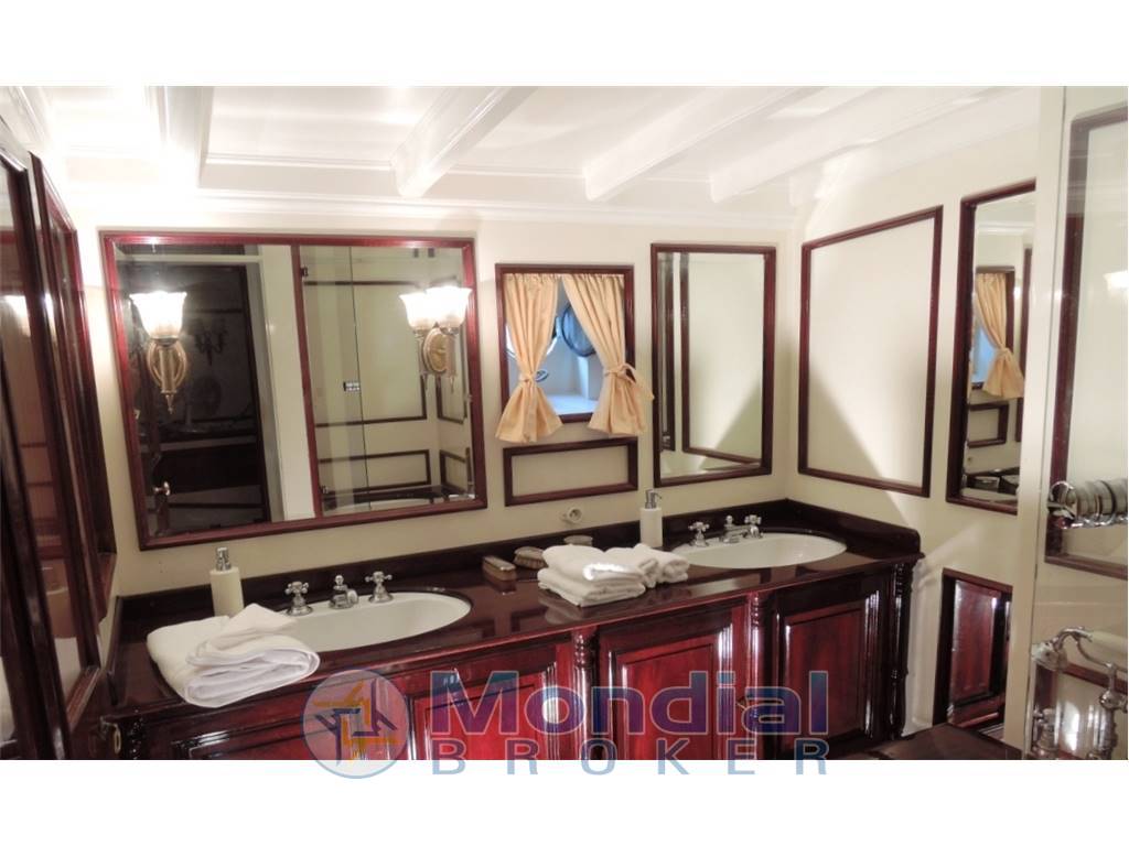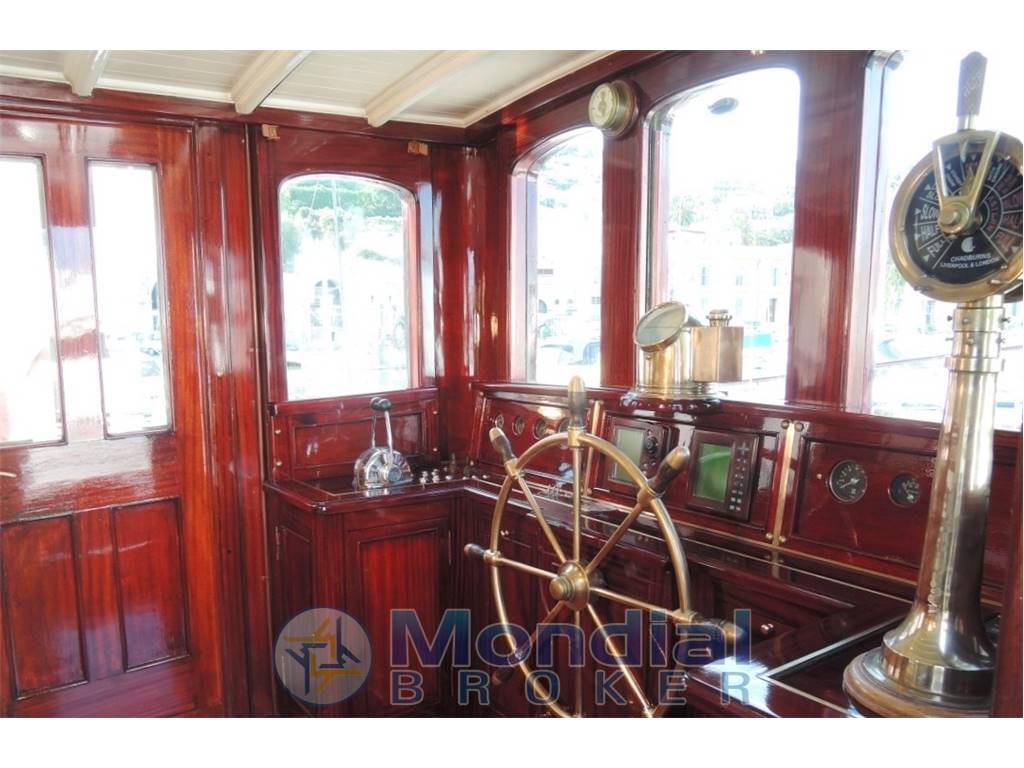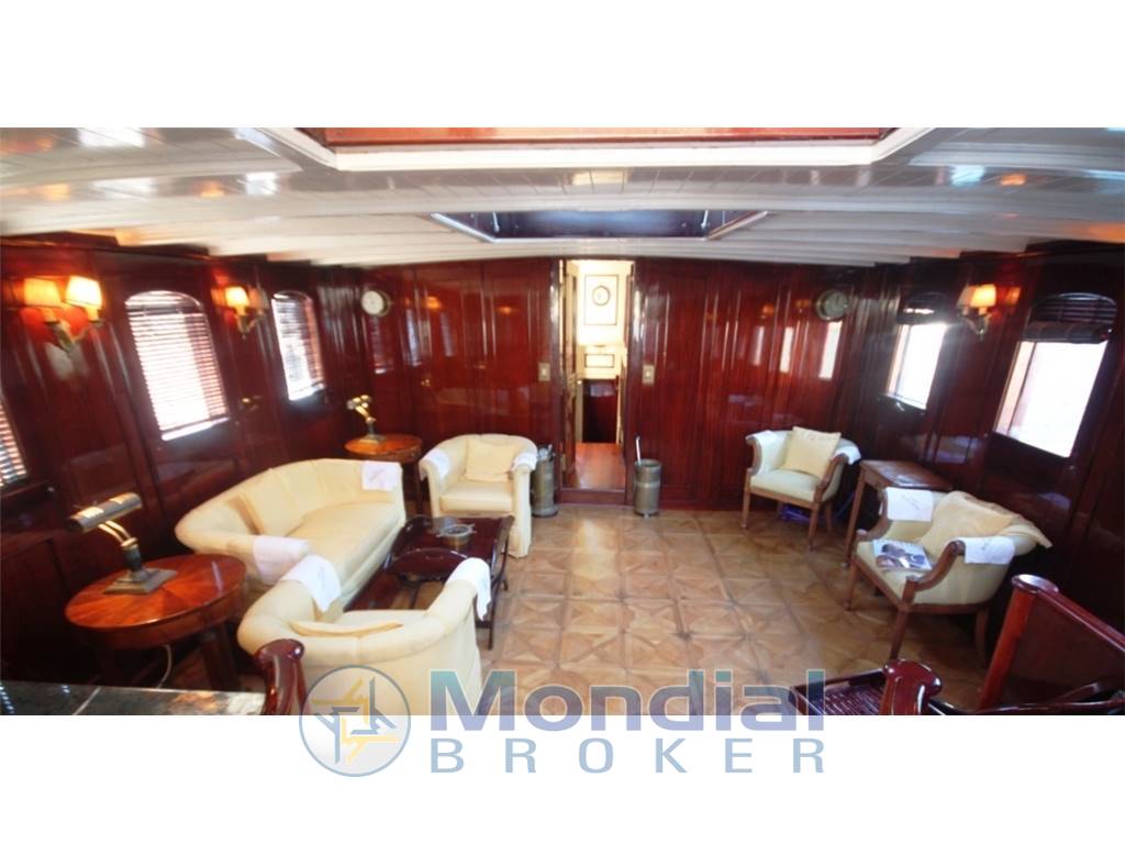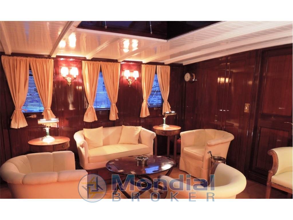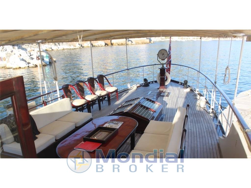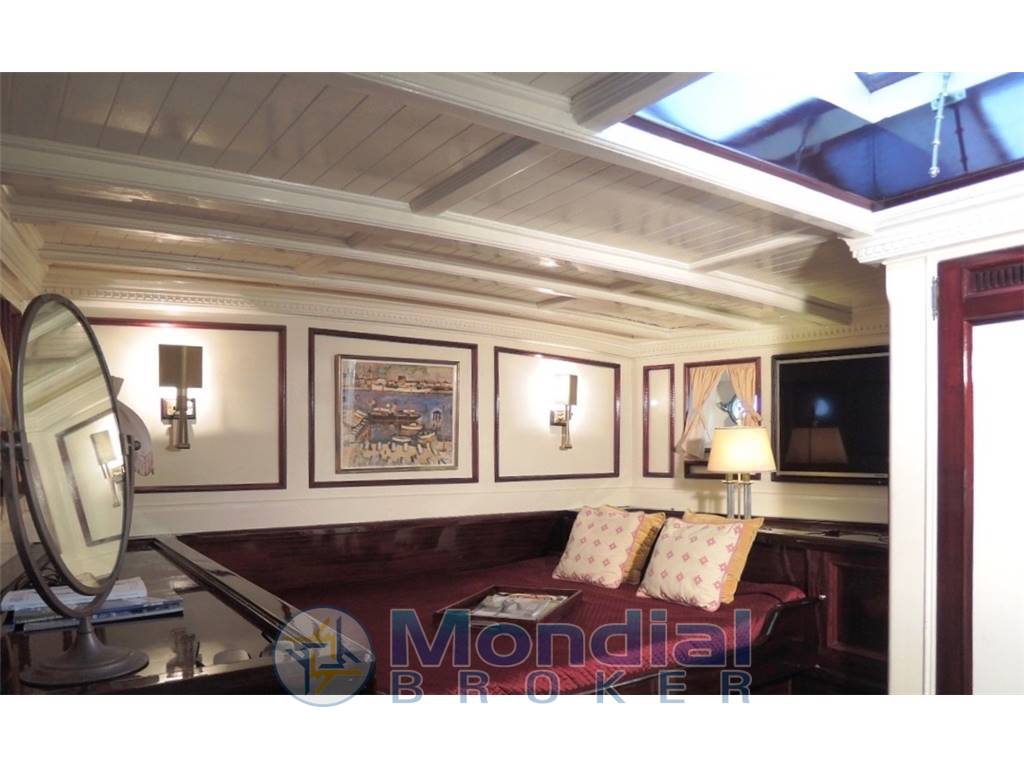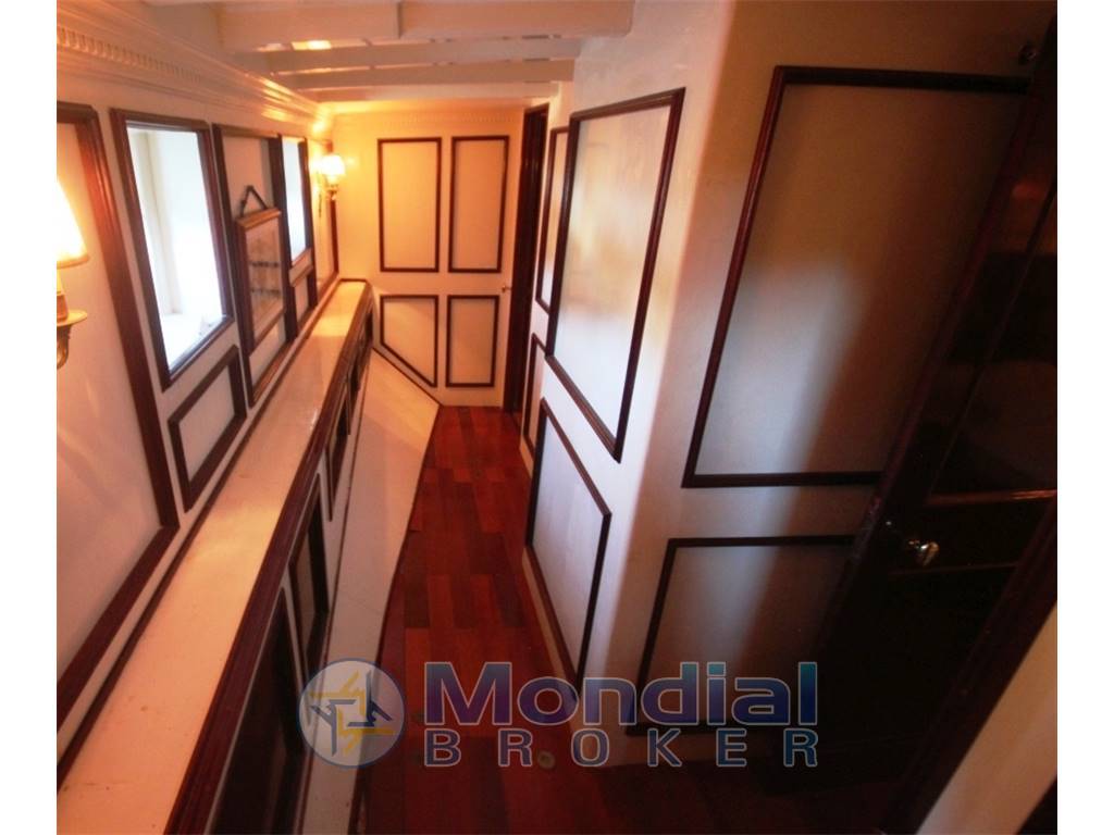 Notas internasCABINA PROPRIETARIO Letto matrimoniale a dritta - Cassetteria sotto - Grande armadio - Scrivania e sedia - Lampada sulla scrivania. Armadietti sotto - Armadietti laterali - Oblò a farfalla su ponte. A dritta della cabina armatoriale c'è il bagno en-suite - Grande vasca/doccia - 2 lavandini con rubinetti H & C - Armadietti sotto - WC automatico. CABINA OSPITI - Letto matrimoniale; cassettiera - Armadietto - Oblò sul - 2 luci di paratia COMPARTIMENTO WC (all'esterno della cabina ospiti) - Doccia - Lavandino - WC automatico. CUCINA Piano cottura Rosieres 3 x gas 1 x elettrico - Lavello in acciaio inox; Frigorifero - Armadietti per alimenti - Caffettiera - Forno a microonde - Tostapane - Lavatrice - Lavastoviglie ALLOGGIO A PRUA 2 cabine ospiti identiche a dritta e a sinistra Le cabine ospiti di prua a dritta e a sinistra sono dotate di:?- Cuccetta singola; cassettiera sotto - Lavandino in acciaio inox - Armadietto pensile. A prua bagno con doccia. CABINA EQUIPAGGIO Sistemazione per 3 membri dell'equipaggio - 1 cuccetta singola a prua; cassettiera sotto - 2 cuccette a V a prua; armadietti sotto - Armadietti pensili - 3 luci a prua - 4 luci di prua - Gavone per le catene a prua Notas de la instrumentaciónPosto di pilotaggio superiore: Timone in bronzo - bussola Faro di ricerca in bronzo - Timoneria - Luci di marcia - Scala a sinistra per il ponte di prua.Ingresso della timoneria al ponte di prua a sinistra e a dritta: Timone in bronzo - Comandi motore e strumentazione - Plotter cartografico - Comando dell'elica di prua - Chiesuola e bussola in bronzo - Radio VHF Sailor - 2 luci a testa di ponte - Banchetto Athwartships sulla paratia di poppa - Plotter cartografico - Ecoscandaglio - Diario di bordo - Bussola di governo - Radio VHF Sailor - VHF portatile - Radar JRC 6 miglia - Elica di prua Max Power 24 V - Timoneria a cavo - Stabilizzatori idraulici WESMAR - Salpa ancora idraulico Hyland Notas de armamentoGeneratore Kohler 10 kW - Generatore di scorta in coperta 5 kW - Caricabatterie/inverter Victron 24 V - Accesso alla sala macchine - Timoneria -Copertura degli oblò - Tendalino sul ponte di poppa - 10 giubbotti di salvataggio - Tender con fuoribordo da 15 hp - 10 parabordi F6 LAYOUT DI COPERTA, EQUIPAGGIAMENTO E ATTREZZATURA DI TERRA Ponte di coperta in teak - Cappe di ventilazione in bronzo - Faro di ricerca in bronzo - Passacavi di ormeggio verniciati di bianco - Bitte di ormeggio di notevoli dimensioni verniciate - Parapetti verniciati di bianco - Corrimano verniciato - Cancello di accesso alla passerella a poppa - Passerella - Boccaporto di coperta a filo a poppa - Oblò a farfalla sulla cabina armatoriale - 2 divani e tavolo di coperta - Parabordi rialzati a babordo e a tribordo - Scala di accesso alla cabina armatoriale - 2 divani e tavolo di coperta - Paratie rialzate a babordo e a tribordo - Scalette per accesso al ponte superiore. PONTE SUPERIORE Oblò a farfalla - Comignolo - 2 lettini prendisole - Stecche e parapetti verniciati di bianco - Corrimano verniciato IN coperta - Campana della nave nell'angolo sinistro della timoneria - Cassetta di stivaggio in legno di fronte alla timoneria - Bitte d'ormeggio in acciaio verniciato di bianco a babordo e a tribordo - Passacavi Panama - Salpa ancora idraulico Hyland - Ancora con 80 m di catena da 14 mm |