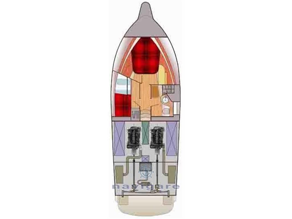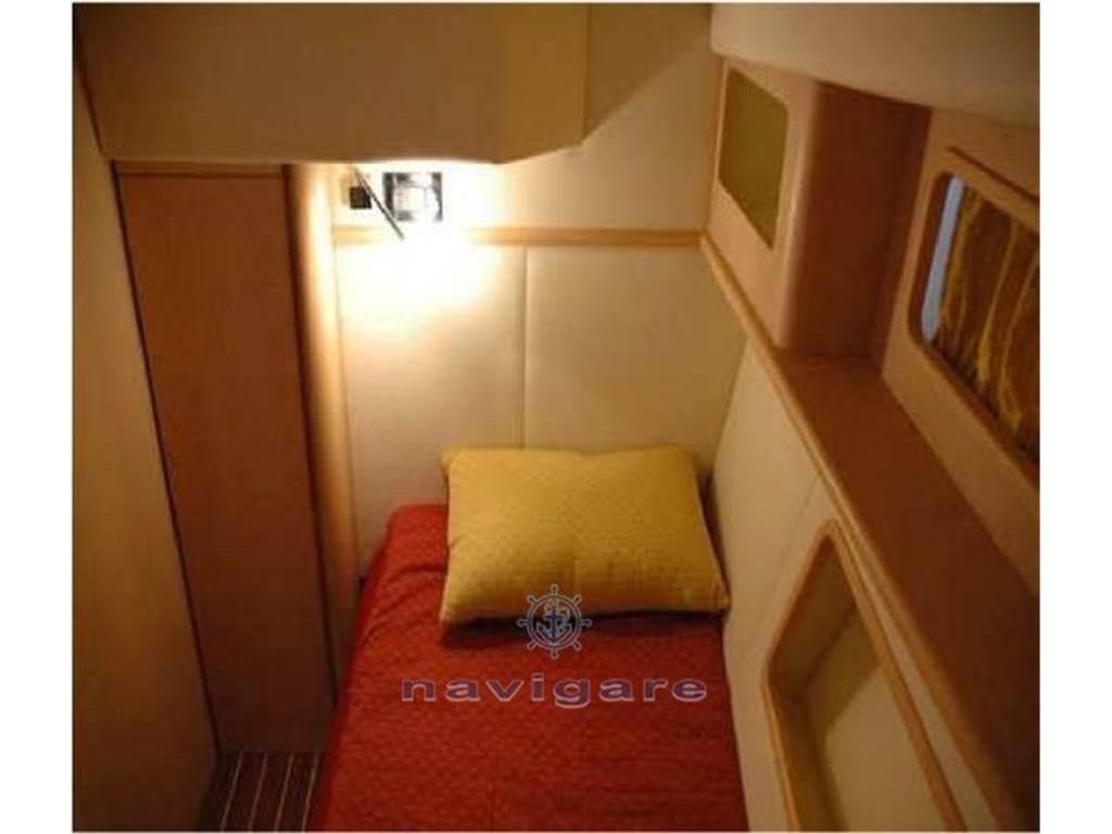 Notas internasDivano a “C” trasformabile in 2 posti letto con cuscineria Tavolo in ciliegio abbattibile con pistone Gavoni sotto il divano ___________________________________________________________________________________ Cucina Mobile cucina con lavello in acciaio inox Piano cottura a 2 fuochi Sottolavello con cassettiera ed alloggiamento per frigorifero e forno a microonde Frigorifero a 12 v da 65 lt. ___________________________________________________________________________________ Bagno Mobile bagno con piana in granito, lavello integrato e anta sotto il lavello Mobile pensile con anta completo di specchio WC elettrico Cabina doccia rettangolare con porta in plexiglass e grata pavimento in teak Serbatoio e pompa elettrica estrazione acqua doccia Tende interne ___________________________________________________________________________________ Cabina di prua Letto armatoriale doppio con materasso e cuscini Cassettiera sotto il letto Gavoni sotto il letto Faretti di lettura Armadio con anta Armadietti pensili con ante Mensole laterali Specchio sulla paratia Tende interne ___________________________________________________________________________________ Cabina ospiti n° 2 letti a castello Armadio con anta Faretti di lettura Tende interne Notas de la instrumentaciónNotas de armamento |