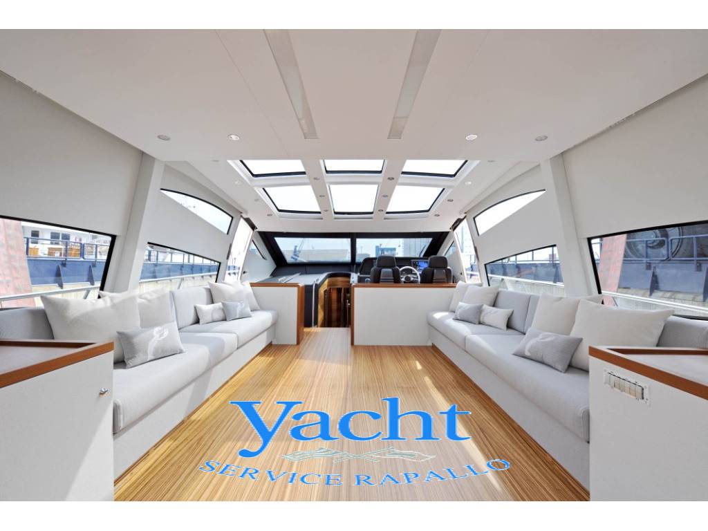 Sarnico ha interpretato il modello secondo la propria filosofia: la barca è l’emblema della libertà e l’open esalta questo concetto. Il nuovo progetto è stato realizzato con la collaborazione ormai consolidata di celebri studi d’architettura navale, già autori di altre creazioni Sarnico. Carlo Nuvolari e Dan Lenard hanno ideato un design aristocratico e sportivo capace di esprimere classe e grinta. Il disegno della carena e la definizione dell’impianto di propulsione sono stati affidati alla Victory Design di Brunello Acampora, esperta nella realizzazione di imbarcazioni molto performanti. Un lungo lavoro di progettazione, l’accurata scelta dei materiali e dei componenti, l’impiego di moderne tecnologie, hanno permesso di ottenere un eccellente rapporto peso/potenza che unitamente all’efficienza dell’impianto di propulsione determina alte andature di crociera e consumi contenuti. Il Sarnico Grande raggiunge prestazioni considerevolmente più alte della media della categoria: ben 42 nodi di velocità massima con una potenza inferiore a quella normalmente utilizzata da imbarcazioni altrettanto veloci. Il perfetto assemblaggio, realizzato con cura ed esperienza, ha permesso di ottenere un eccellente comfort acustico. Il facile ingresso in planata e l’agilità in navigazione sono le altre qualità emergenti di un progetto che stabilisce nuovi primati attraverso l’innovazione tecnica. Il profilo è slanciato e resta tale anche nella versione con “command bridge” che permette di pilotare all’aperto e di godere di un’ulteriore area prendisole riservata. Ambienti ampi e massima privacy sono i concetti attorno ai quali si è sviluppata la compartimentazione interna. Il layout è frutto di una meticolosa opera di simulazione d’abitabilità elaborata attraverso la realizzazione del mock up in scala reale. Il ponte principale dedica ampio spazio alla vita all’aria aperta, in sintonia con l’utilizzo prevalentemente estivo dello yacht. Nel pozzetto si sviluppano tutte le attività della giornata e il salone diventa il suo prolungamento, non il contrario. Il vano si affaccia all’esterno con finestrature che incorniciano il panorama, senza mai nasconderlo. La porte sui passavanti seguono il medesimo concetto di totale apertura, ma al tempo stesso migliorano la mobilità e soprattutto accrescono la facilità di manovra e la sicurezza in navigazione, specialmente in condizioni di scarsa visibilità. Per dare spazio al salotto la cucina è stata posta sul ponte inferiore e per separarla dalla zona notte è stata dotata di una scala di accesso indipendente. Sottocoperta l’armatoriale conquista un ruolo dominante sviluppandosi per l’intero baglio, ricevendo luce da grandi finestrature panoramiche ed estendendosi verso prua con l’adiacente spogliatoio e verso poppa con il locale bagno. Comodità e comfort di alto livello accompagnano gli ospiti nelle tre cabine a loro dedicate, ovviamente provviste di toilette “en suite” con box doccia. Nuovi morbidi tessuti di lino della rinomata C&C Milano donano freschezza e charme ai rivestimenti interni ed esterni. L’applicazione della domotica semplifica la gestione dell’imbarcazione e l’impianto di illuminazione, interamente a led, elimina sprechi di energia. Lo stile e la qualità Sarnico solcano oggi il mare con la più “Grande” delle imbarcazioni della gamma che esprime il suo valore attraverso la tecnologia, il design e l’arredamento e la sua funzionalità attraverso un concept esclusivo, dedicato al mare, all’estate, alla “vita open”. Tempi di consegna: 12 mesi - Interni: a scelta dell'armatore |