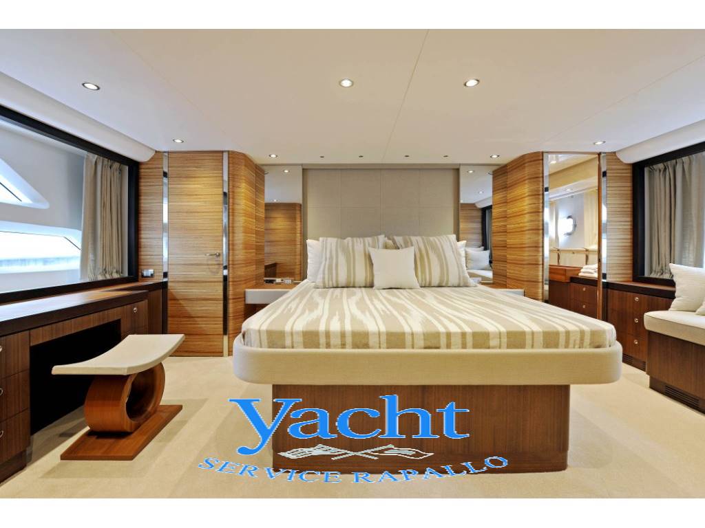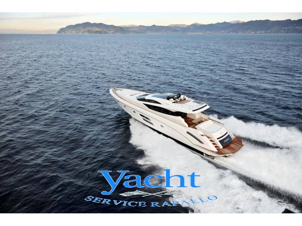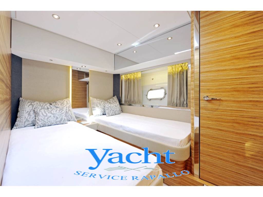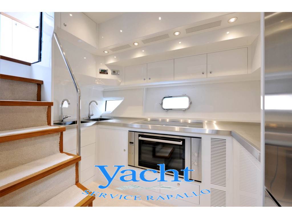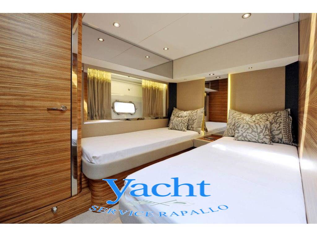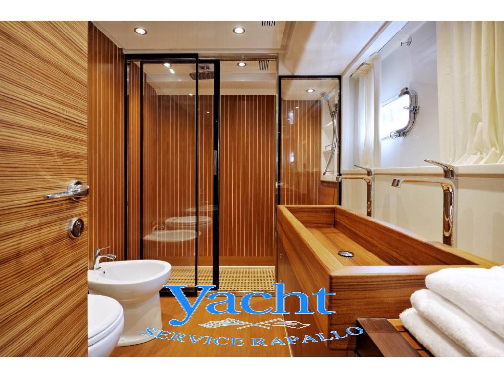 Notas internasLetto matrimoniale con ripostiglio sotto il piano, burlone rivestito, materasso - Tavolini da notte (2) - Luci di lettura - Armadi (2) areato –Vanity table con ribaltina a specchio e pouf - TV colori 26” LCD con digitale terrestre integrato in chiaro - Radiostereo CD/MP3/DVD – Illuminazione e prese di corrente - Cassaforte - Specchio – Finestrature (2) con oblò- Divanetto - BAGNO ARMATORE Armadietti, ripiani e cassettiera – Lavabi (2) con miscelatore - Aspiratore - Specchio - WC elettrico – Bidet - Illuminazione e prese di corrente - Doccia separata con carabottino di teak - Oblò con tendina. CABINA VIP A PRUA Letto matrimoniale con cassettiera e burlone rivestito, materasso - Ripiani portaoggetti e luci di lettura - Armadio areato – Specchio - Radiostereo CD/MP3/DVD - Illuminazione e prese di corrente - Oblò (2) con tendina. BAGNO CABINA VIP A PRUA Armadietti e ripiani - Lavabo con miscelatore - Aspiratore - Specchio - WC elettrico – Bidet - Illuminazione e prese di corrente – Doccia separata con carabottino di teak - Oblò con tendina. CABINA OSPITI DX Due letti con cassettiera e burloni rivestiti, materassi - Armadio areato - Mobiletti pensili - Luci di lettura - Specchio - Radiostereo CD/MP3/DVD con attacco iPod – Illuminazione, prese di corrente - Oblò con tendina. BAGNO OSPITI CABINA DX Armadietti e ripiani - Lavabo con miscelatore - Aspiratore - Specchio - WC elettrico - bidet - Illuminazione e prese di corrente - doccia con carabottino di teak - Oblò con tendina. CABINA OSPITI SX Due letti con cassettiera e burloni rivestiti, materassi - Armadio areato - Mobiletti pensili - Luci di lettura - Specchio - Radiostereo CD/MP3/DVD con attacco iPod – Illuminazione, prese di corrente - Oblò con tendina. BAGNO OSPITI CABINA SX Armadietti e ripiani - Lavabo con miscelatore - Aspiratore - Specchio - WC elettrico - bidet - Illuminazione e prese di corrente - doccia con carabottino di teak - Oblò con tendina. CABINA EQUIPAGGIO LettI (2) con materassI - Armadietti (2) - Oblò (1) con tendine – Radiostereo con CD/MP3/DVD con attacco iPod - Illuminazione e prese di corrente - Tavolo con pouf (2) Porta stagna accesso sala motori BAGNO EQUIPAGGIO Armadietti e ripiani - Lavabo con miscelatore - Aspiratore - Specchio - WC elettrico con bidet incorporato - Illuminazione e prese di corrente - doccia con carabottino di teak. LOCALE LAVANDERIA Locale attrezzato con ripiani CUCINA Mobile con piano di lavoro in acciao inox, cassetti e ripiani – Lavelli (2) in acciao inox con miscelatore - Piano di cottura a 4 fuochi in vetroceramica - Aspiratore - Frigorifero con freezer a colonna in acciao inox –Pattumiera - Forno 90 cm - Mobiletti pensili - Illuminazione e prese di corrente – Oblò (2) con tendina. COPERTA Finestrature fisse (6) sky windows – Antenne - Illuminazione pozzetto - Parabrezza con cristalli temperati - Tergicristalli con lavavetri - Passo d’uomo in cabina VIP in acciaio inox – Battagliola alta in acciaio inox - Paratia stagna anticollisione - Bottazzo in acciaio inox - Doccetta a prua e poppa - Tenda parasole con candelieri - Zone prendisole a prua e poppa con materassini - Luci di navigazione - Luci perimetro pozzetto - Tromba - Passerella elettroidraulica - Piattaforma di poppa – Luci segna gradini specchio poppa - Teak nel pozzetto - Teak piattaforma di poppa e gradini – Teak su camminamenti laterali. POZZETTO Tavolo - Gavoni - Porta in vetro temperato accesso salone - Portello accesso cabina equipaggio. DINETTE N. 02 divano con tavolino - Tavolo da pranzo con sedie - Mobile bar - Frigo - Gavoni - Illuminazione e prese di corrente - TV colori LED con digitale terrestre integrato in chiaro – Stazione meteo (Orologio - Barometro – Igrometro) - Radiostereo con CD/MP3/DVD con attacco iPod con altoparlanti - Porte stagne accesso camminamenti laterali (2) Notas de la instrumentaciónPLANCIA DI COMANDOSedile pilota e copilota (2 posti) – Microcomandi elettronici - Stazione di governo con timoneria idraulica – Strumentazione controllo motori e allarmi - Bussola magnetica - Angolo di barra - Pilota automatico - Radiotelefono VHF - Chart/Plotter - Comando stabilizzatori di assetto con indicatore e comandi trim – Quadro sinottico -Interruttori vari. SISTEMA DI PROPULSIONE Due motori diesel MAN da 1.140 kW (1.550 hp cad.) montati su supporti antivibranti - Invertitori/riduttori – Sistema Flexi Power drive trimmabile - Eliche in Nibral - Scarichi motori immersi. IMPIANTO DI GOVERNO Timoneria idraulica servo assistita - Timoni - Stabilizzatori di assetto elettroidraulici - Elica di manovra in tunnel prodiero. Notas de armamentoCOSTRUZIONEStruttura in vetroresina multiassiale impregnata con resina vinilestere e stratificata a mano - Coperta e murate in sandwich di Airex - Longheroni e madieri di rinforzo stratificati e resinati - Strato esterno in gel coat isoftalico neopentilico - Carena trattata con antivegetativa. IMPIANTO CARBURANTE Due serbatoi in acciaio inox + decantatore (l.6000 complessivi) - Bocchette d'imbarco sui trincarini - Controllo livello in plancia e dal serbatoio sinistro mediante livello visivo - Filtri separatori acqua/gasolio - Linee carburante con valvole di chiusura anche a distanza. |