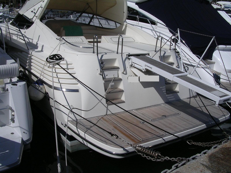 Notas internasNotas de la instrumentaciónPiloto automático-GPS/plotter-VHF-usuarioNotas de armamentoGenerador. Aire acondicionado. Hélice de proa. Passerella idraulica, escalera de baño, cabrestante eléctrico, flaps hidráulicos, toldos, cojines completan de Sun. Cabina de fibra de vidrio. Mesa de comedor hidráulico. Puente de popa teca.Toldo de invierno. |