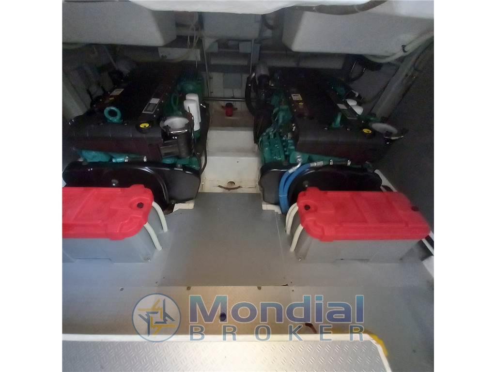 Notas internasNotas de la instrumentaciónAngolo barra, Bussola, Comando motori elettronico, Computer di bordo, Contametri catena, Display, Ecoscandaglio, GPS, Joystick, Pilota automatico, Radio VHF.Notas de armamentoAllestimento tecnico e di coperta:Allarme motore, Autogonfiabile, Doccia esterna, Elica di prua - bow thruster, Faro orientabile, Flap idraulici, Impianto antincendio, Indicatori Flaps, Luci di cortesia, Luci subacquee, Passerella (Idraulica), Piattaforma, Pompa di sentina automatica, Pozzetto Teak, Presa 220V banchina, Presa acqua banchina, Salpa Ancore Elettrico, Scaletta da bagno, Sistema Depurazione acque nere, Tavolo pozzetto, Tavolo Salone Abbattibile, Tromba, Winch. Dotazioni domestiche di bordo: Aria condizionata, Clima reversibile, Impianto acque nere, Prese interne 12v, Prese interne 220v, Serbatoio Acque Nere, 2 WC marino elettrico. Intrattenimento: Altoparlanti, Digitale Terrestre, Impianto TV, Radio AM/FM, Stereo, TV. Cucina ed elettrodomestici: Cucina, Forno, Frigorifero interno, Microonde, Piastra in vetroceramica. Tappezzerie: Cappottina, Cuscineria completa, Cuscineria di poppa, Cuscineria di prua, Cuscineria Pozzetto, Oscuranti, Telo copriconsolle, Tendalino, Zanzariere. |