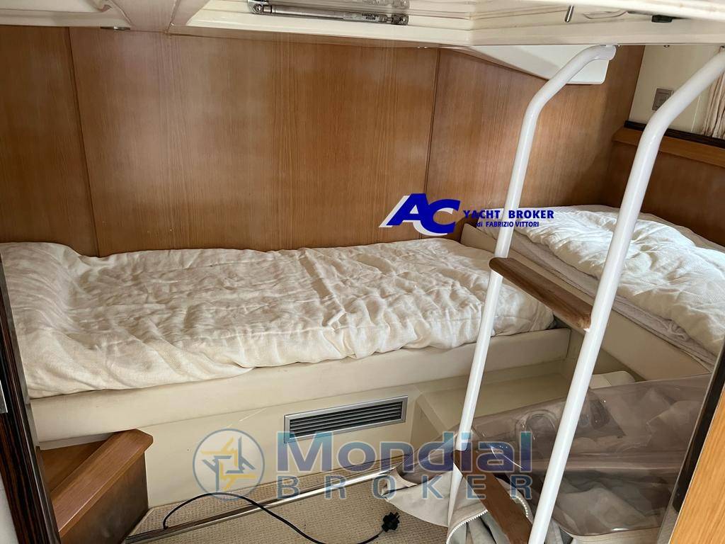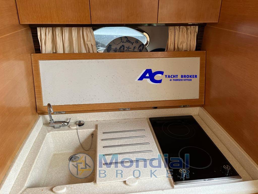 Notas internasCalpestio in moquette Notas de la instrumentaciónPlotter con antenna gps, vhf, ecoscandaglio, pilota automatico, impianto stereoNotas de armamentoGeneratore da 5 Kw. Mase, aria condizionata caldo/freddo, boiler, autoclave, verricello elettrico, passerella elettroidraulica a scomparsa (Besenzoni), pozzetto e pedana di poppa in teak, joystick di manovra, mobile esterno con lavello e frigo, frigo interno con congelatore, kit tavolo maggiorato esterno a scomparsa, cuscineria prendisole completa, bimini-top elettrico (2022), chiusure laterali-frontali-pozzetto, cappa copri cruscotto, doccetta esterna, garage per tender, tender Plastimo mt.2.20 con motore da 2.5 hp. |